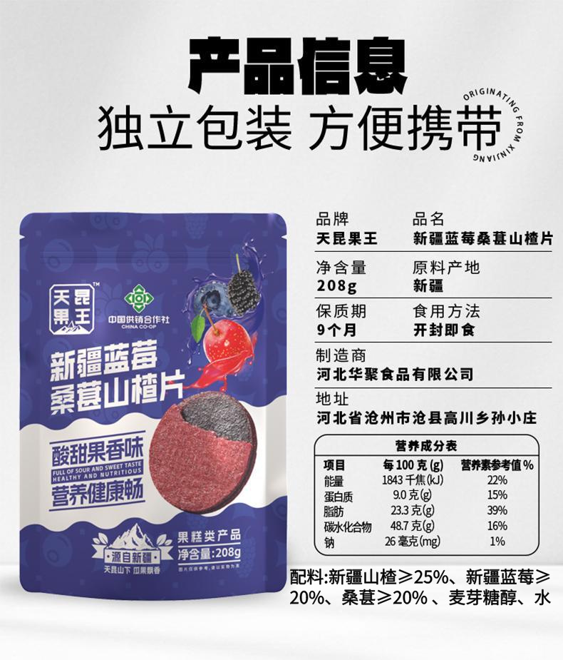 天昆果王 新疆蓝莓桑葚山楂片 208g/袋