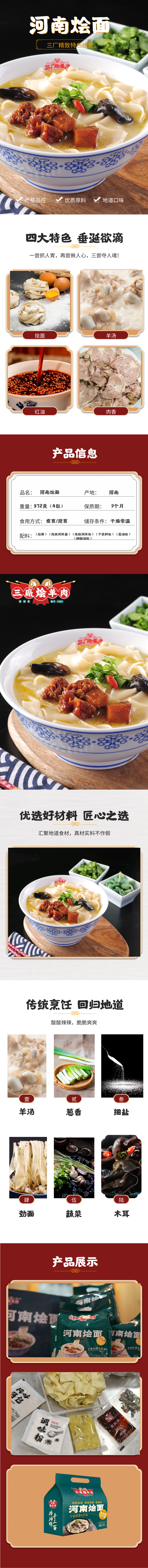河南特产 三厂烩面 礼盒装 572g*4包 非油炸 手工面