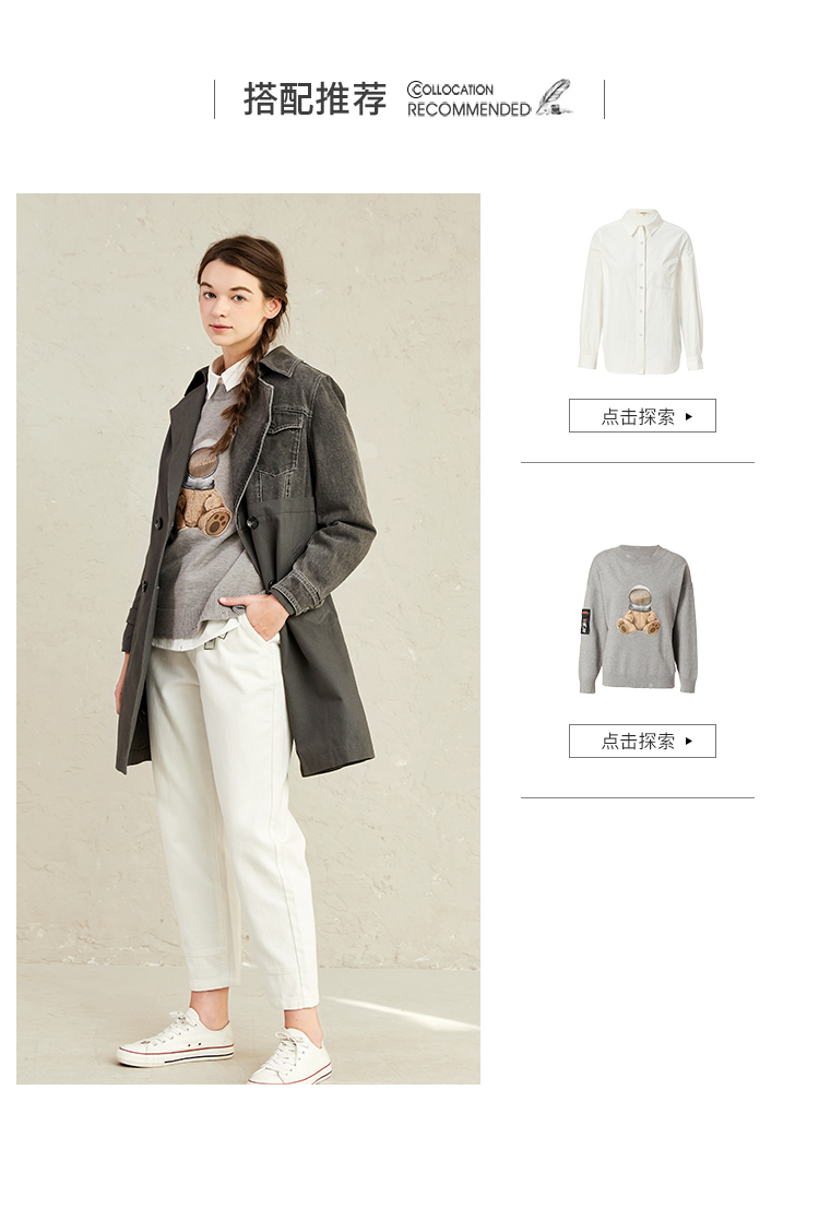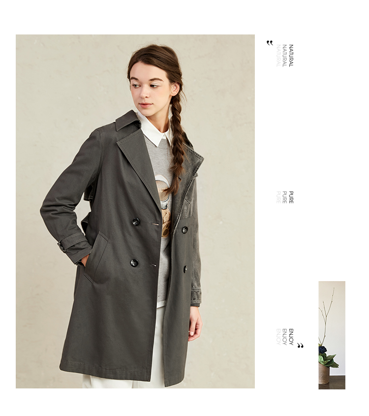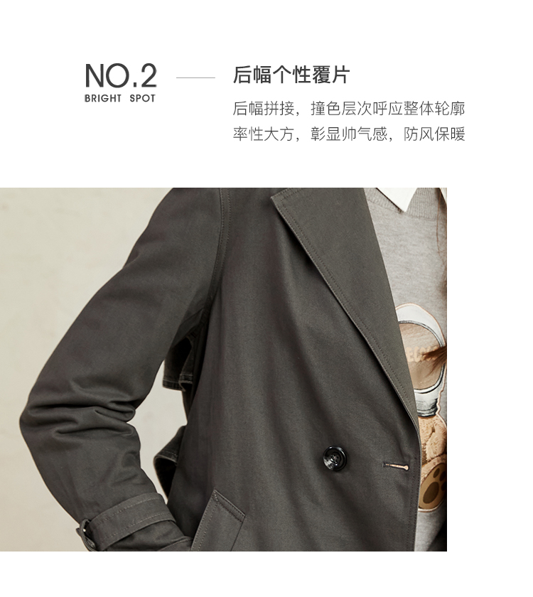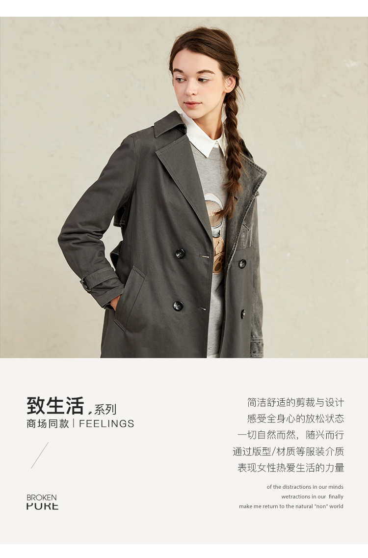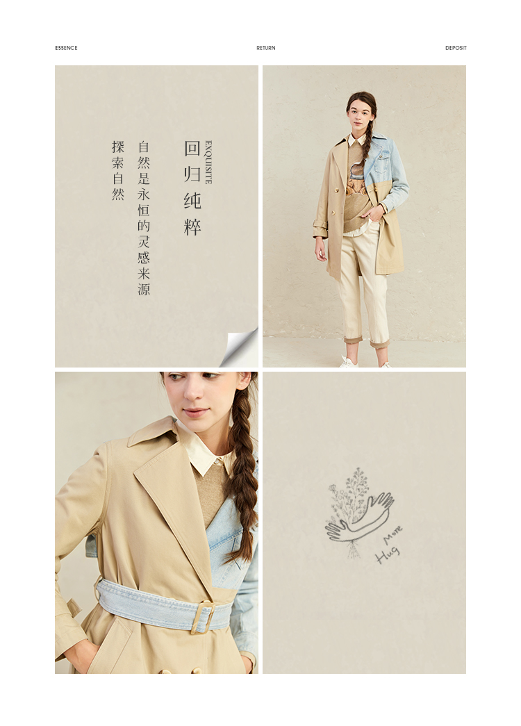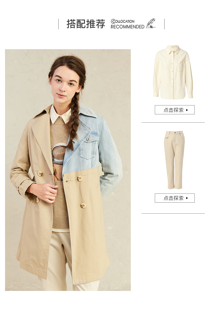 Famecoco范可儿牛仔拼接风衣女中长款小个子收腰外套F221AA005