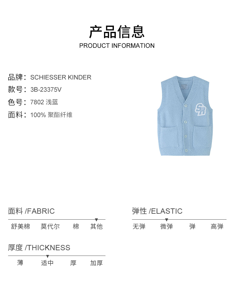 【半边绒】SCHIESSER德国舒雅男童马甲全涤半边绒柔软保暖弹性佳3B/23375V