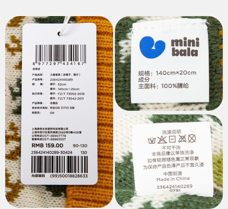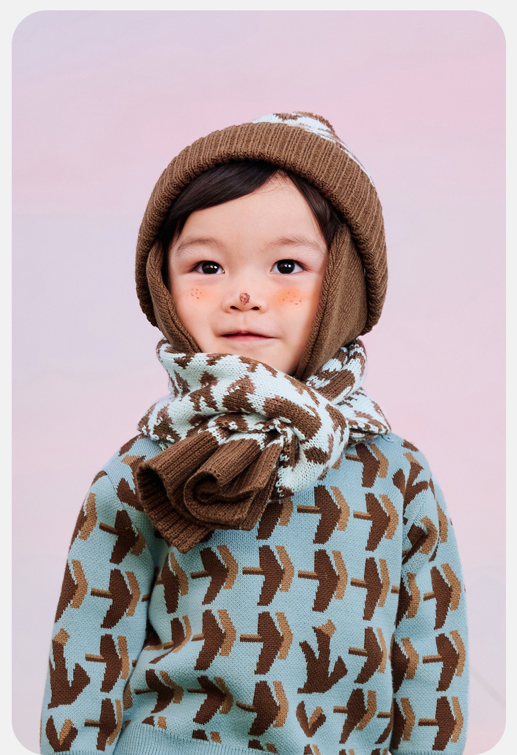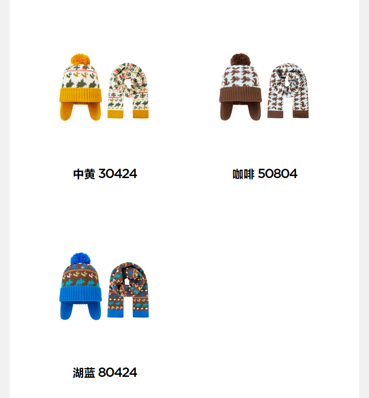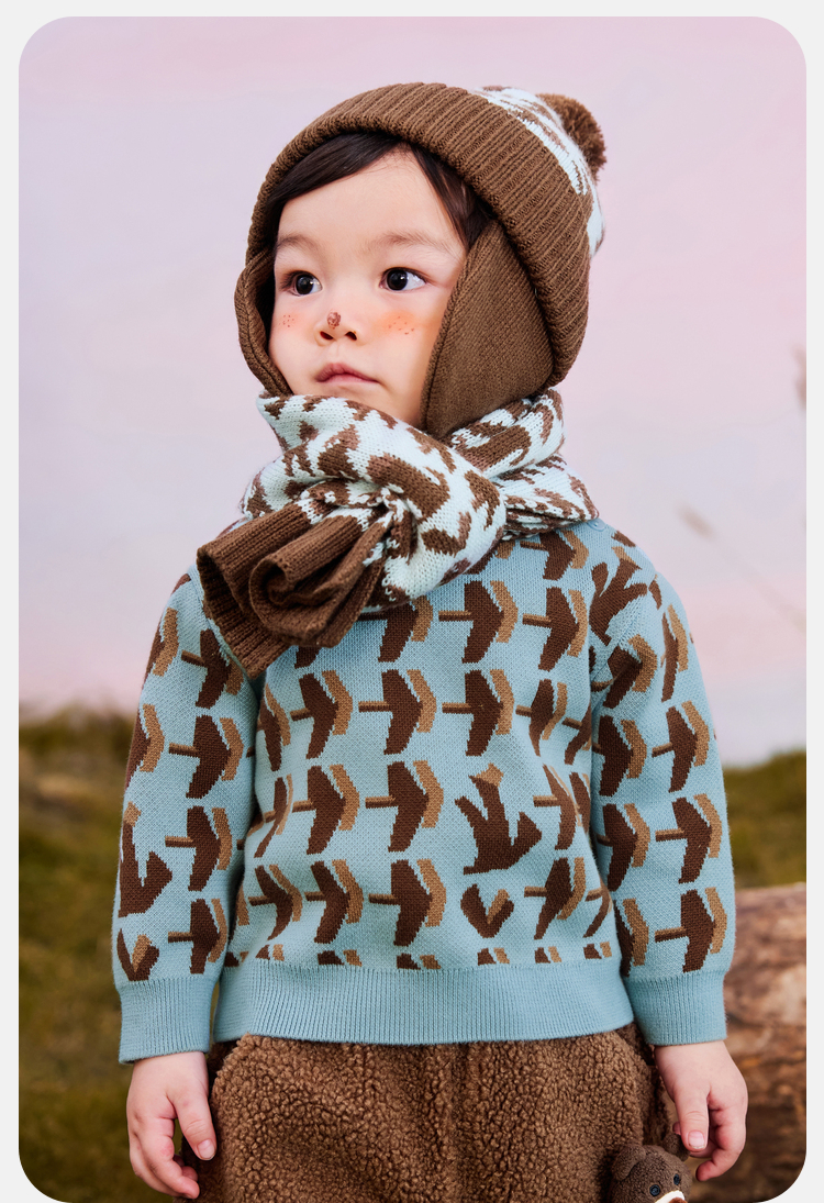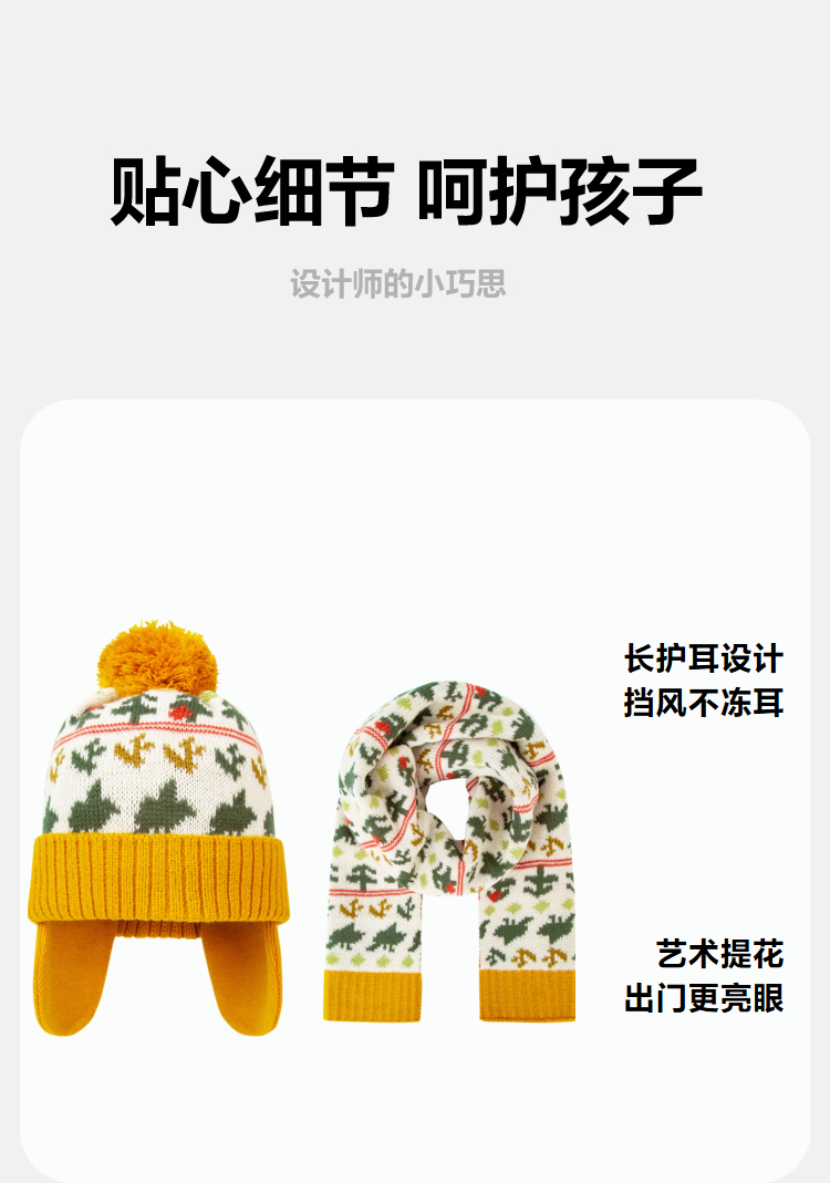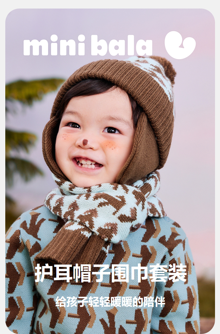 【两件套】迷你巴拉冬季新款男女童保暖提花护耳帽围巾套装