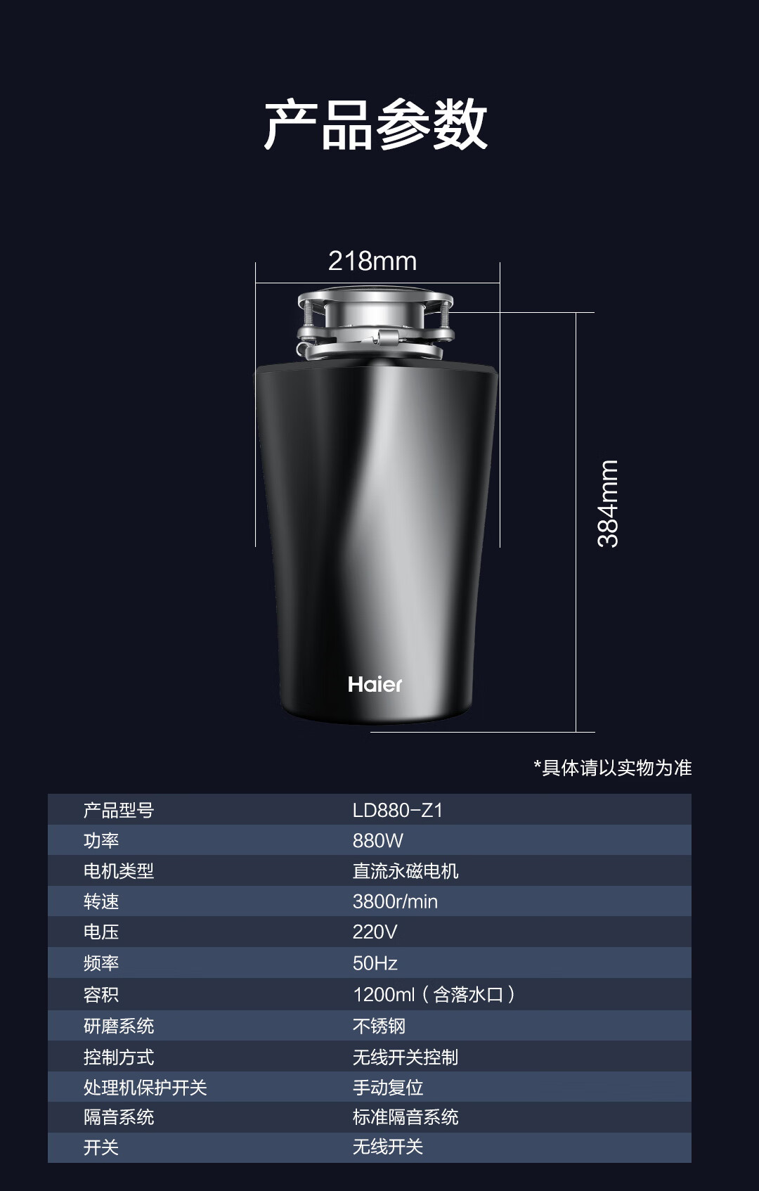 海尔(Haier)全自动垃圾处理器厨房厨余餐余家用食物粉碎渣机LD880-Z1