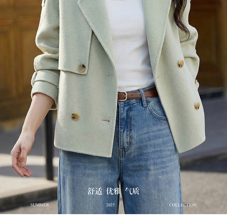 小个子短款羊毛呢外套 米思阳2026春季高端羊毛双面呢厚实保暖 通勤设计感大衣女1381