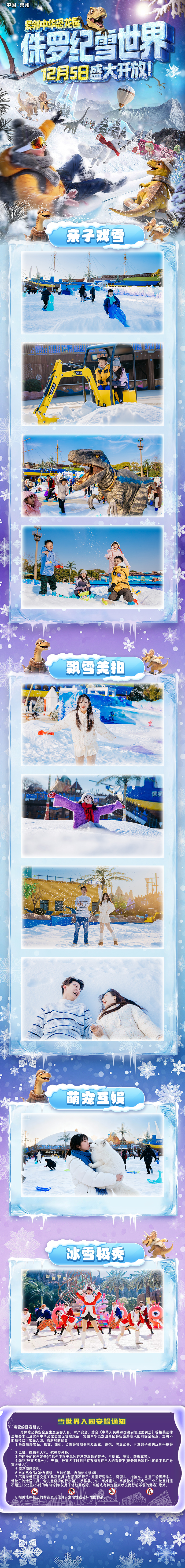 温馨提醒:游客进入雪世界需穿硅胶防滑鞋套(可自带或现场购买),雪世界内部分项目需单独收费(具体收费标准以现场告知为准)