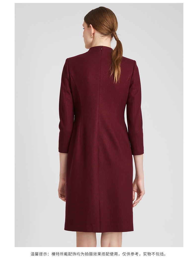 皮尔卡丹女装秋季新款轻奢端庄优雅毛呢连衣裙P1422E1984T0