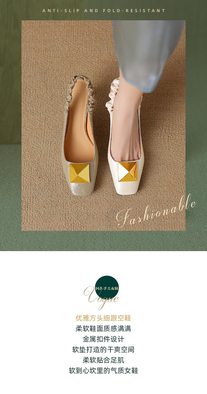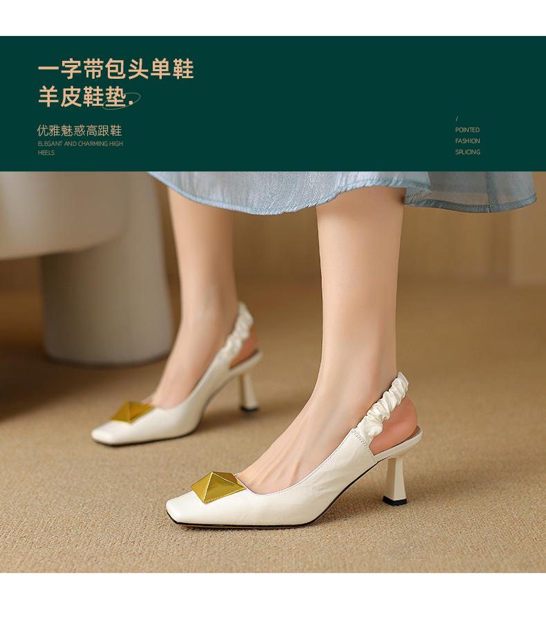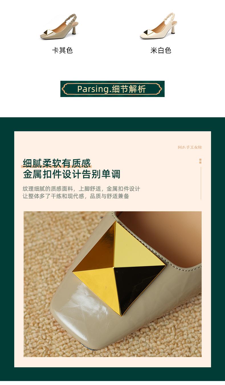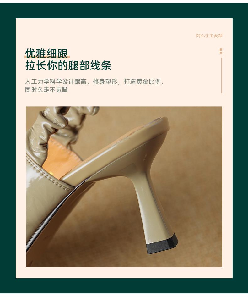 阿么手工女鞋2025新款时尚百搭小方头羊皮凉鞋女浅口高跟鞋6.5CM