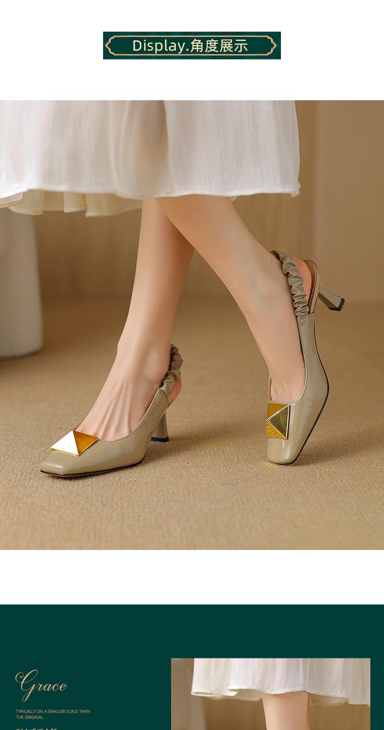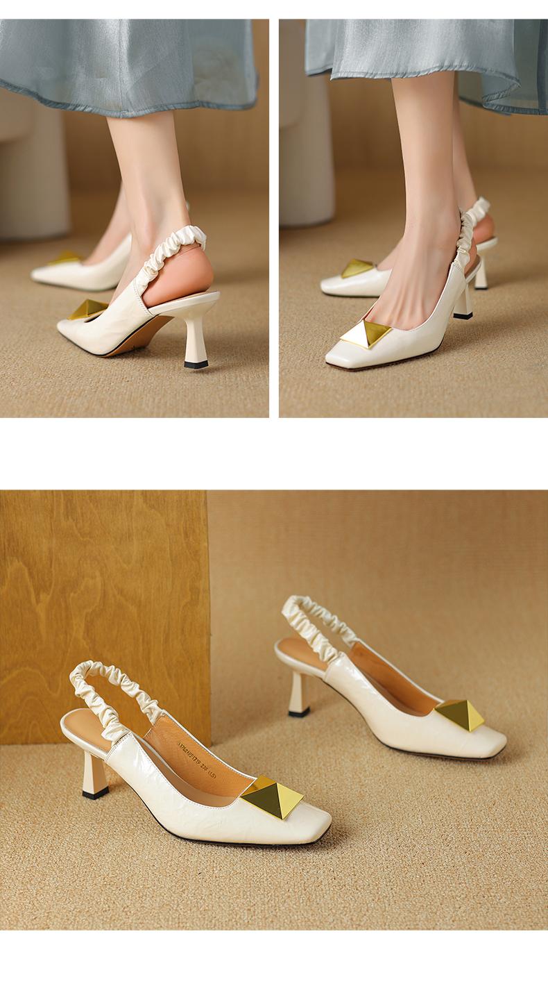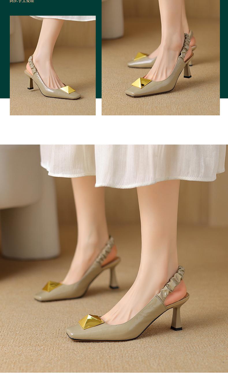 阿么手工女鞋2025新款时尚百搭小方头羊皮凉鞋女浅口高跟鞋6.5CM