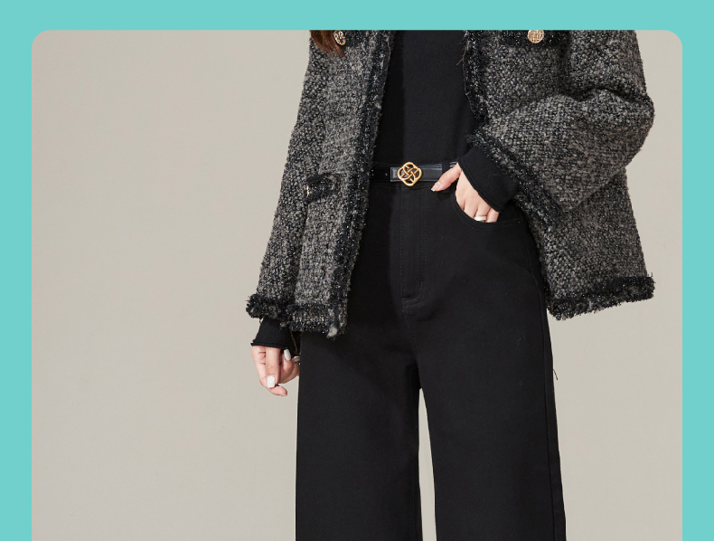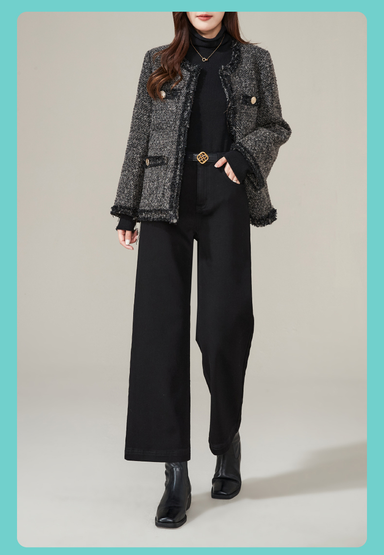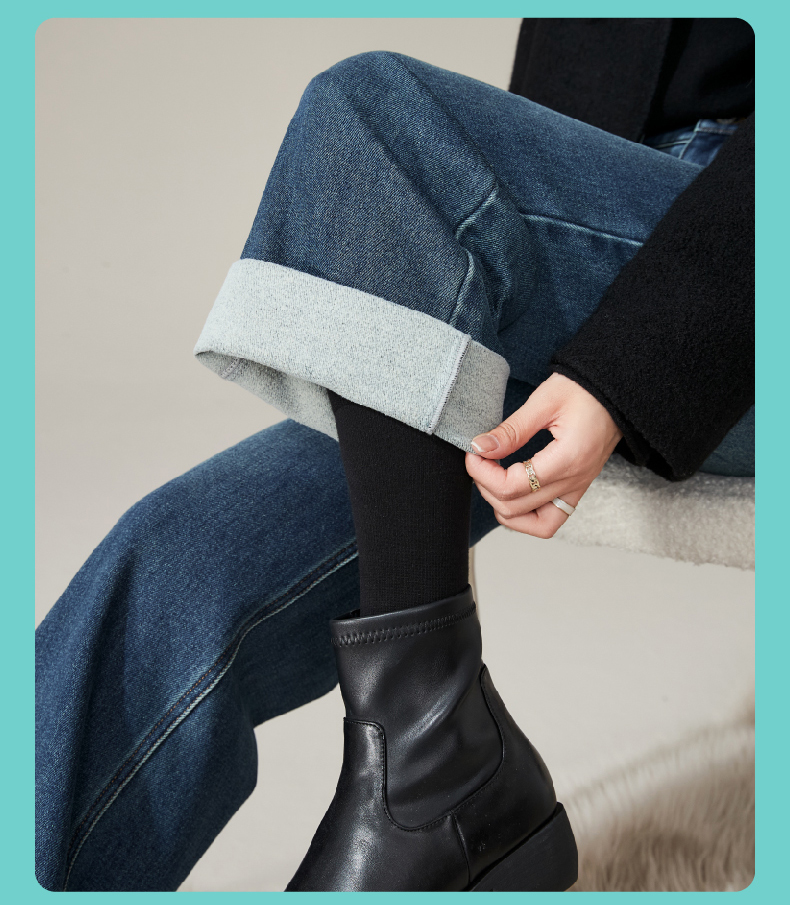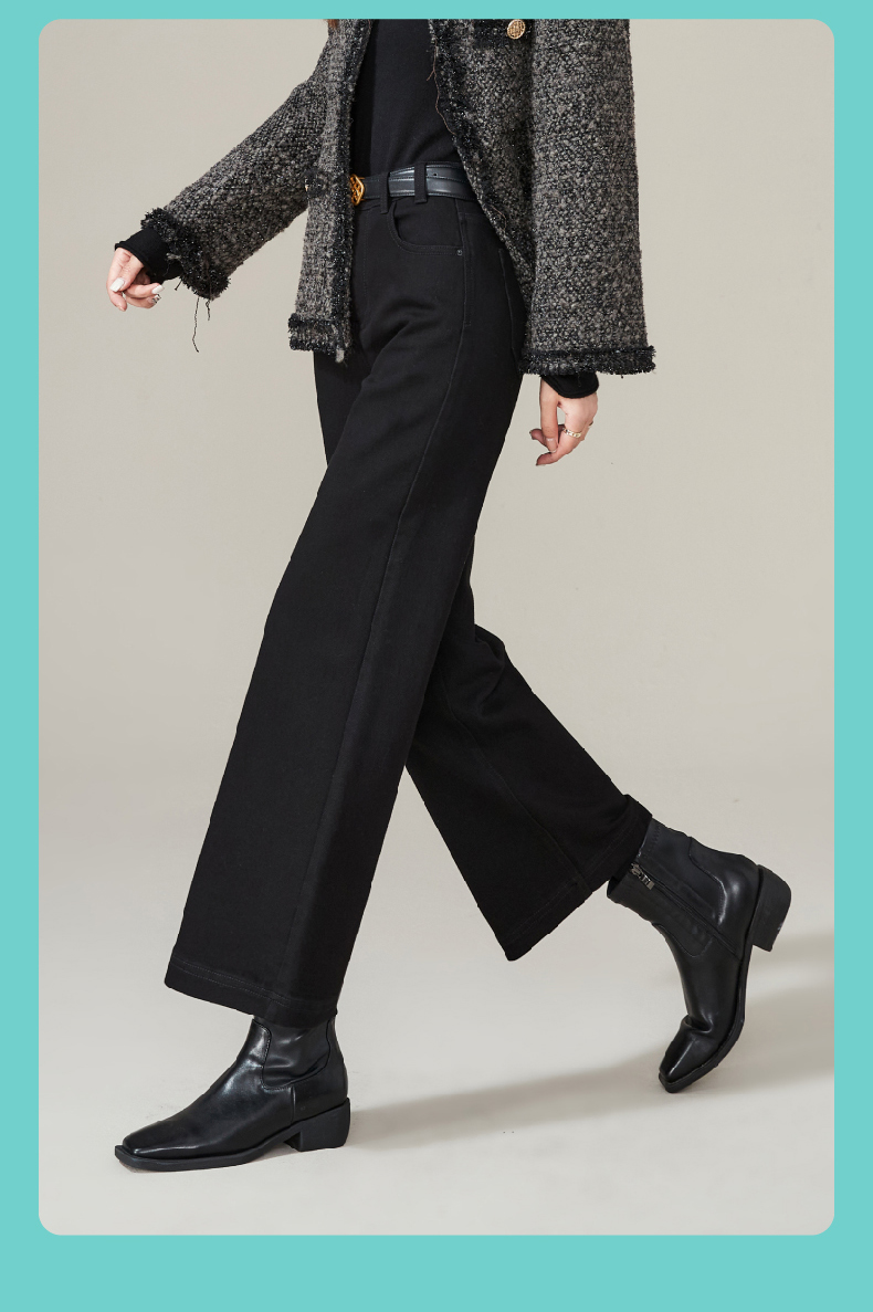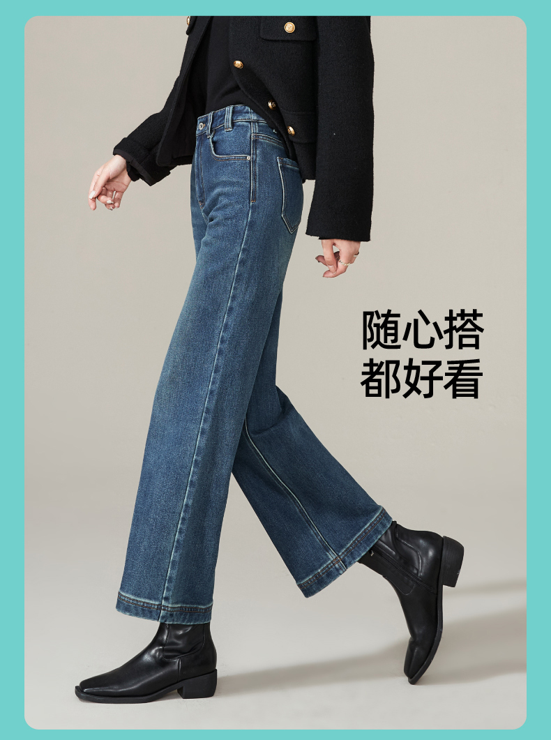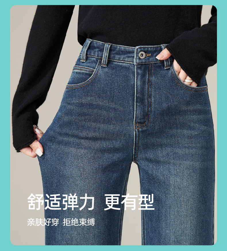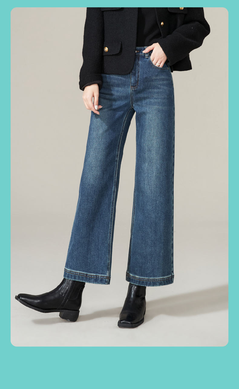逸阳加绒宽直筒牛仔裤女2024年冬季新款九分宽松显瘦保暖阔腿裤子1723
