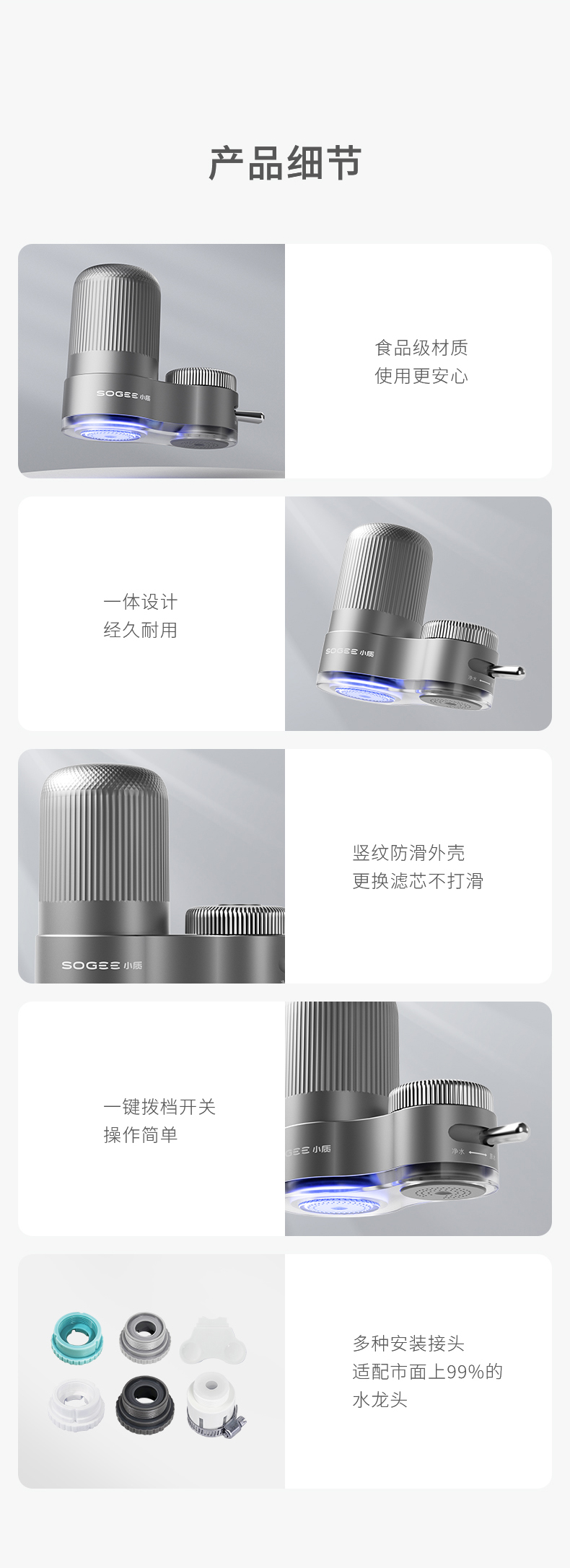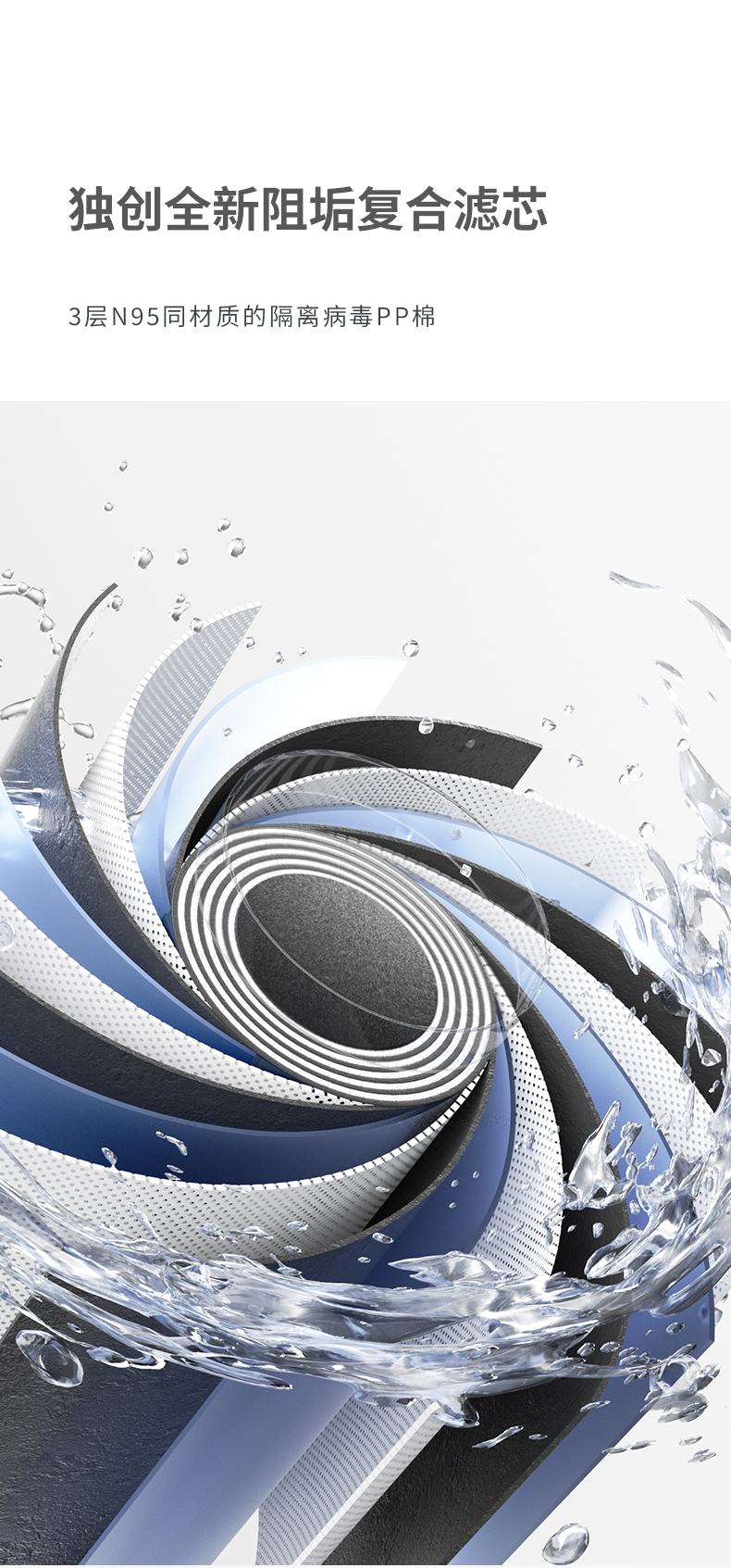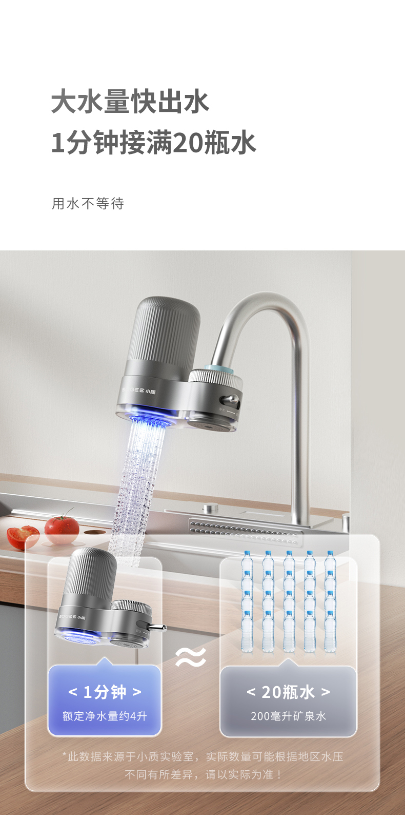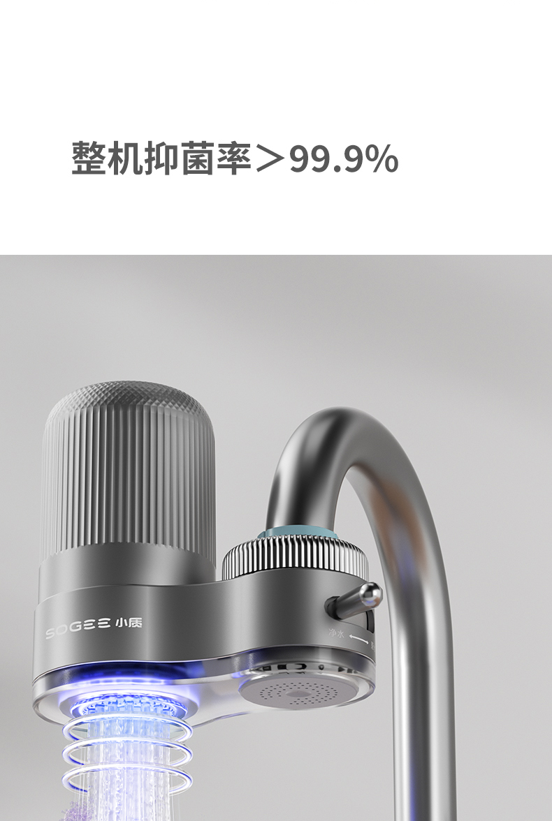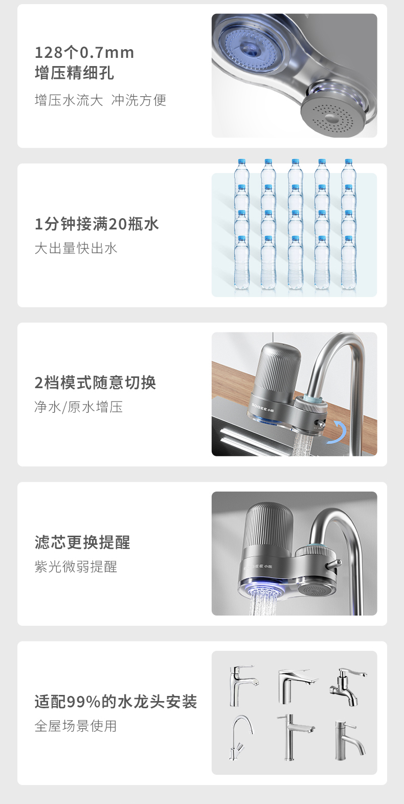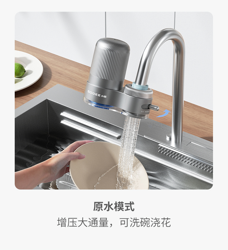 【水力发电】 小质龙头净水器LJ203 涡轮磁感水力发电 3层长效PP棉 10层过滤 有效除重金属/除阻垢/除氯 适配99%水龙头