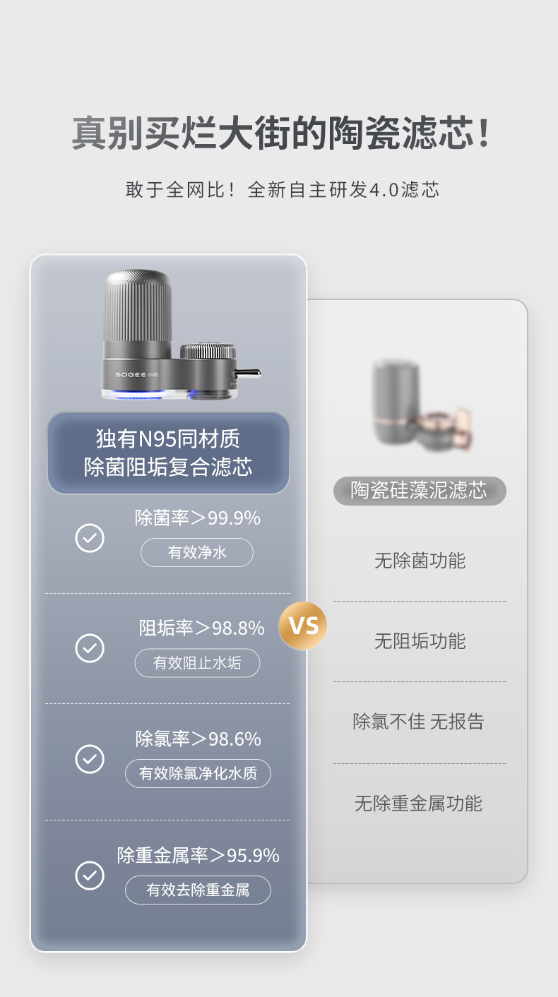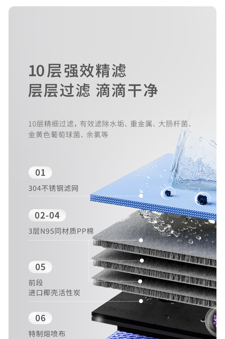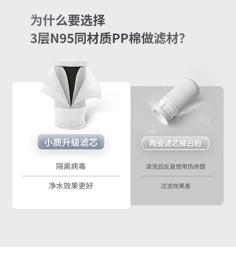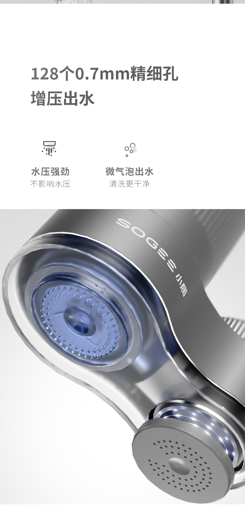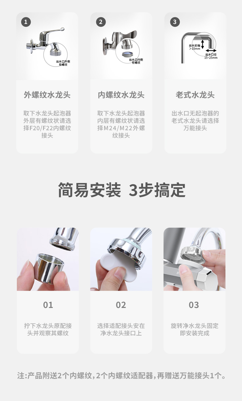 【水力发电】 小质龙头净水器LJ203 涡轮磁感水力发电 3层长效PP棉 10层过滤 有效除重金属/除阻垢/除氯 适配99%水龙头