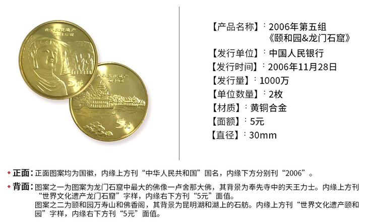 世界文化遗产--颐和园/龙门石窟纪念币卡册(康银阁)