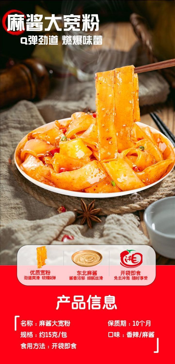 【燃爆味蕾❗香辣味/麻酱味大宽粉】精选优质红薯宽粉,嚼劲十足,软糯弹牙,网红即食食品零食大礼包速食小零食便宜量大L