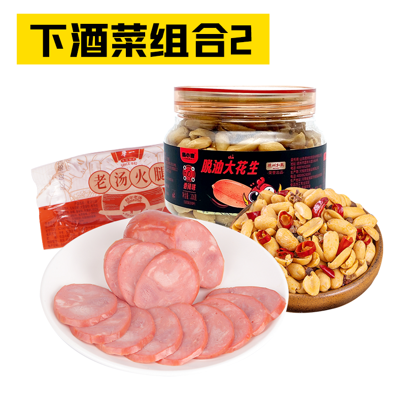[下酒菜组合2]五香味脱油花生206g*1+老汤火腿300g*1 开袋即食