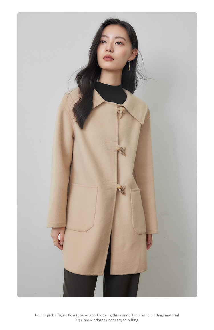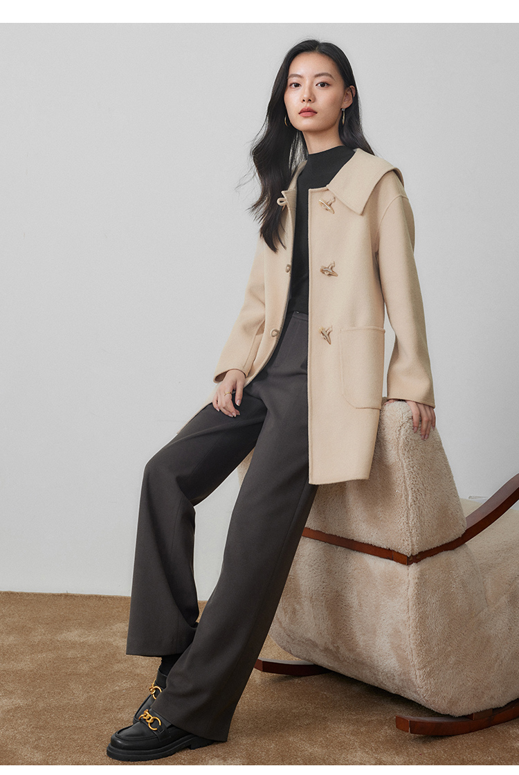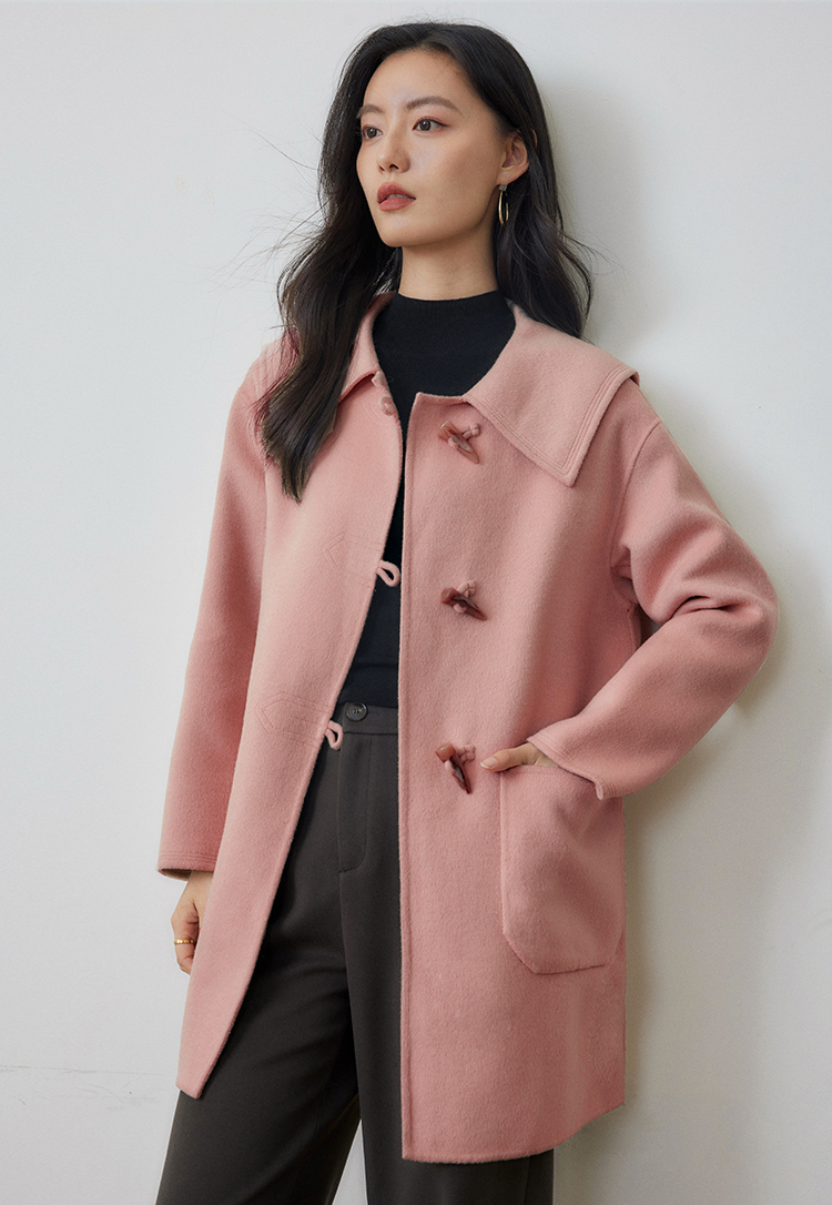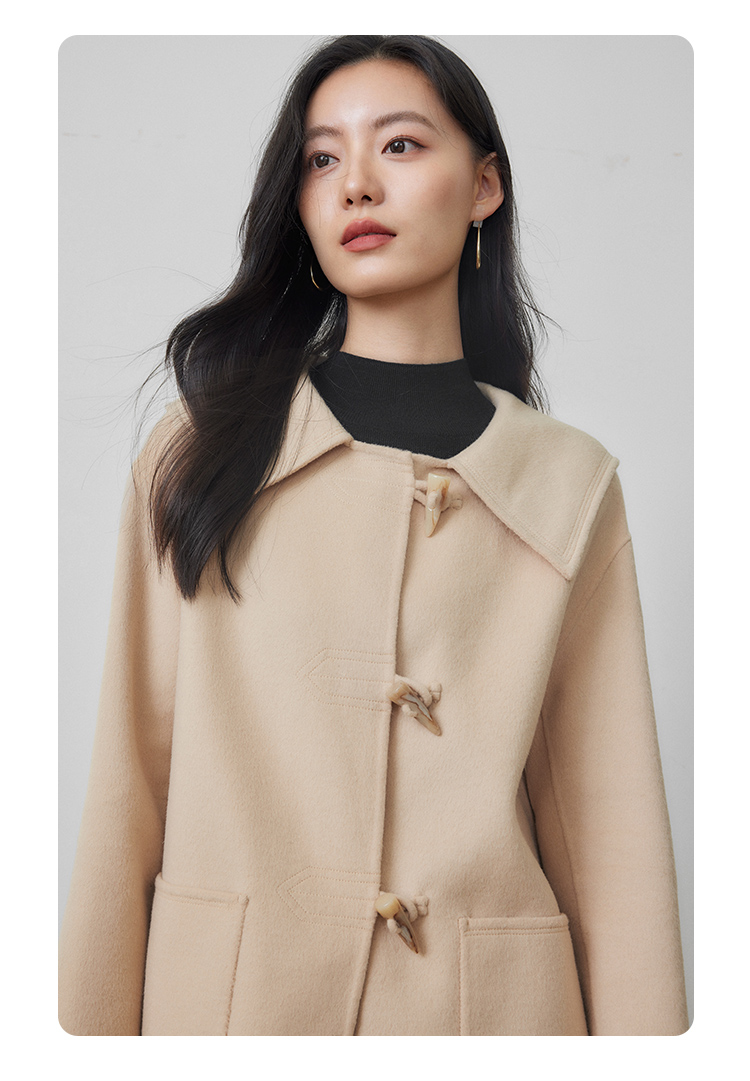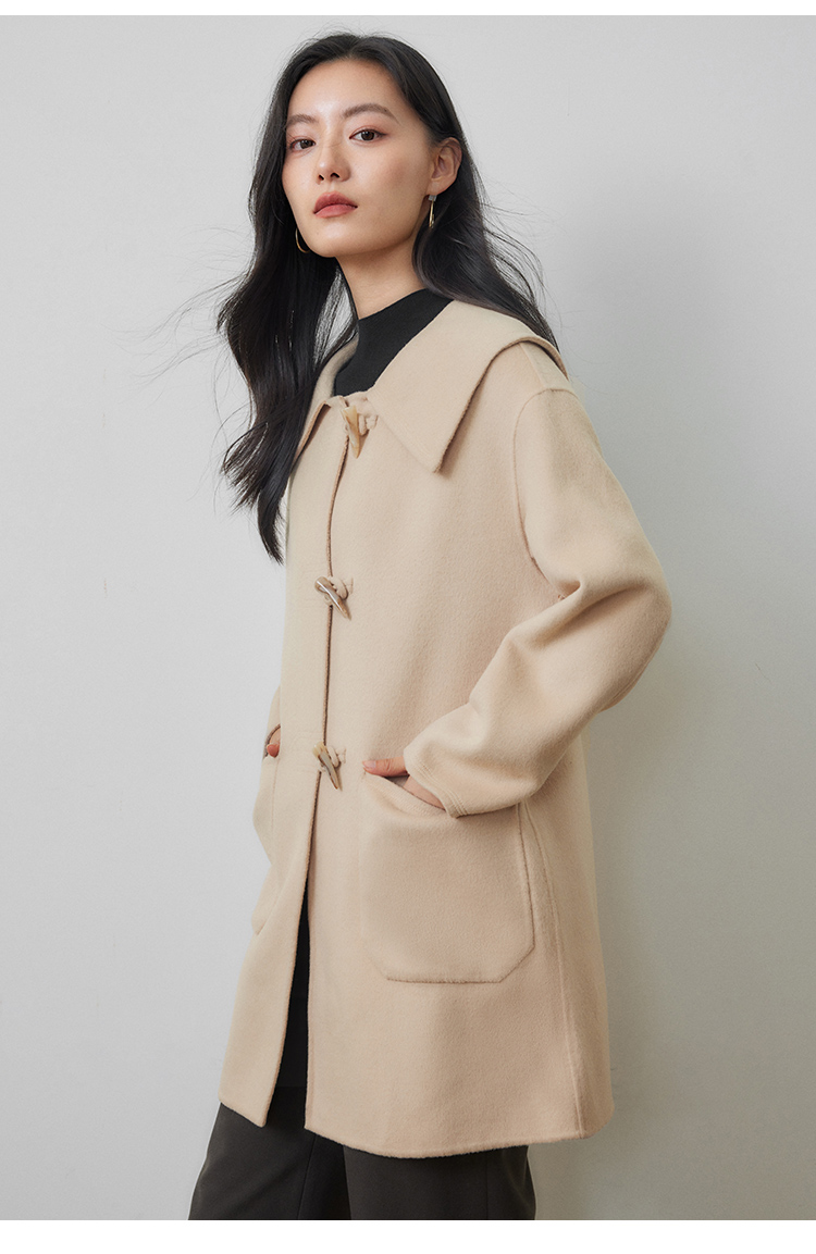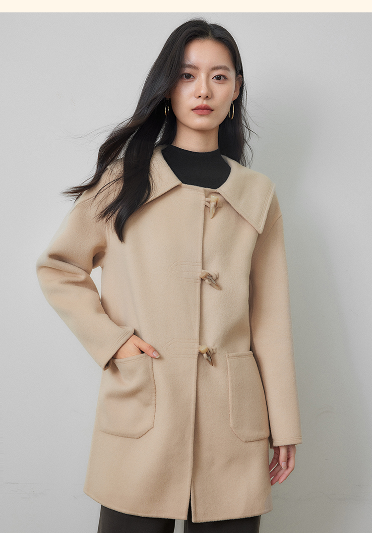 【年终特卖】熙世界牛角扣双面呢大衣秋冬海军风翻领羊毛呢子外套