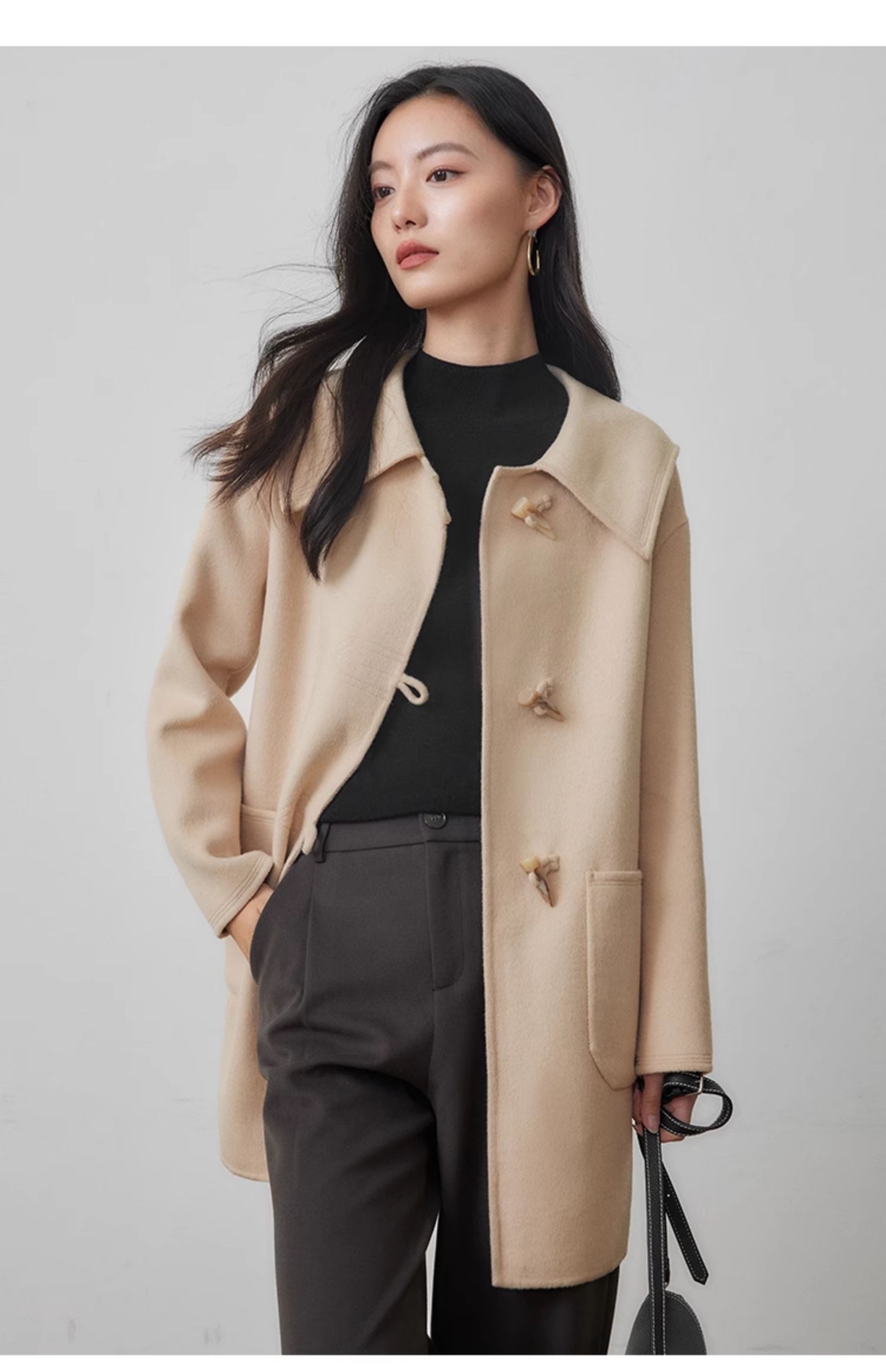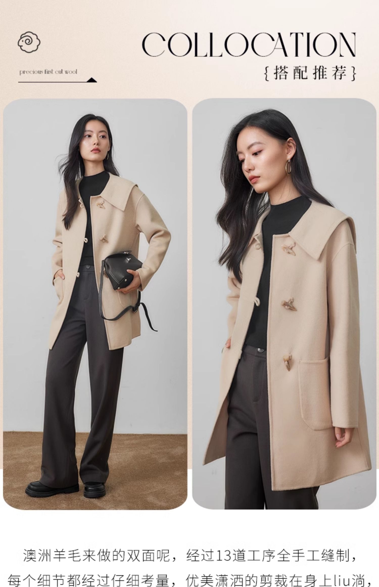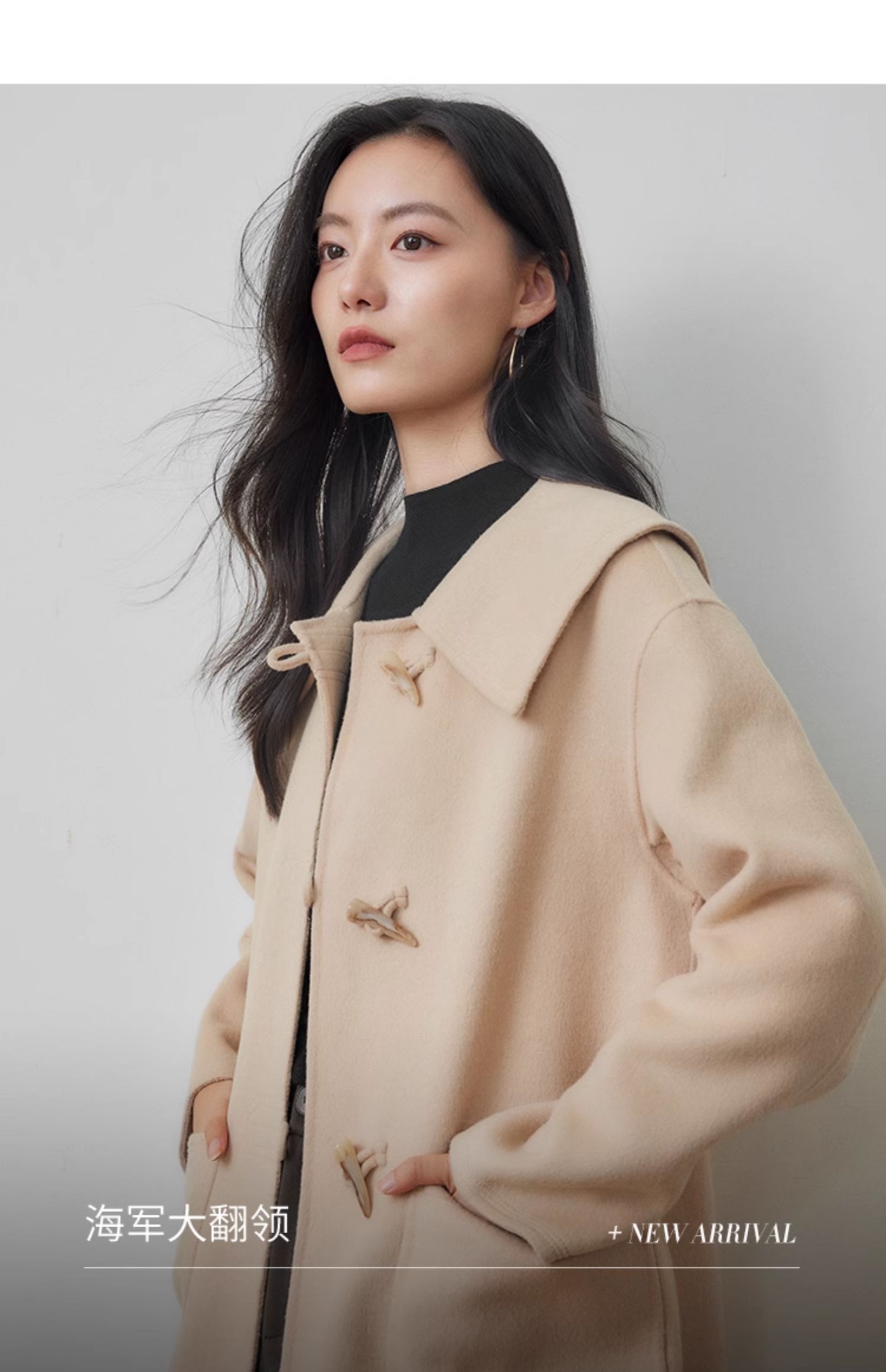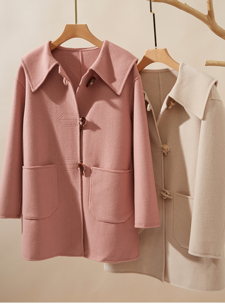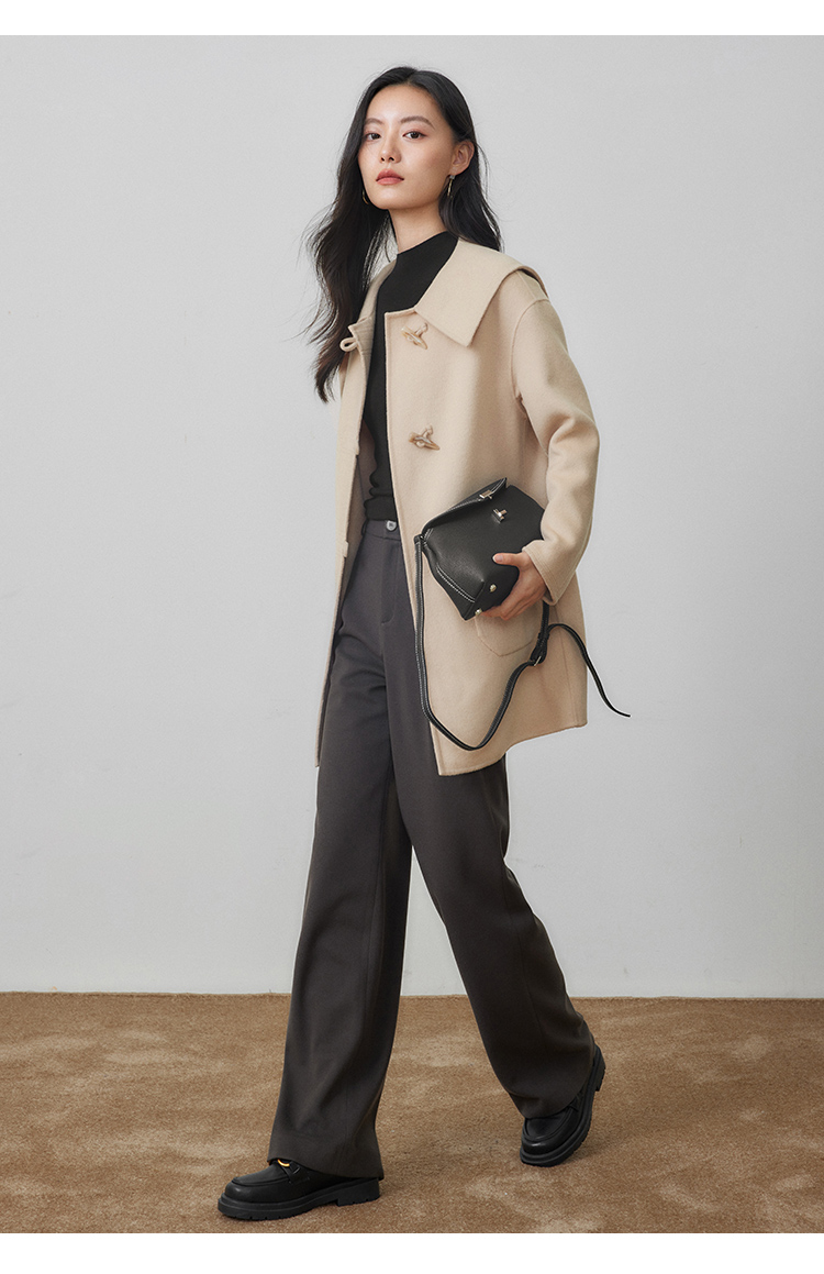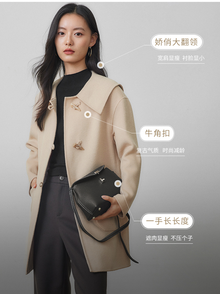 【年终特卖】熙世界牛角扣双面呢大衣秋冬海军风翻领羊毛呢子外套