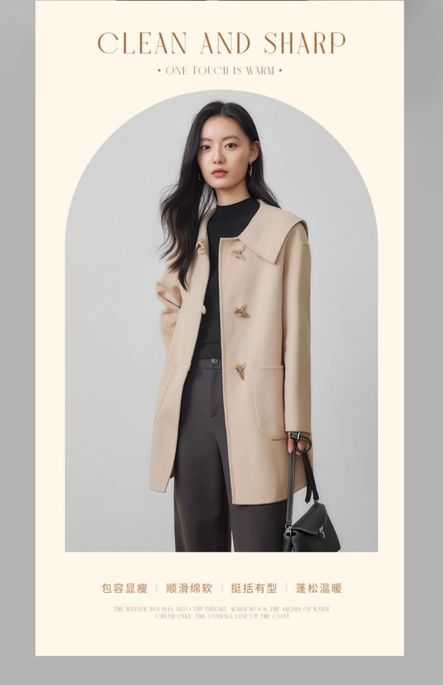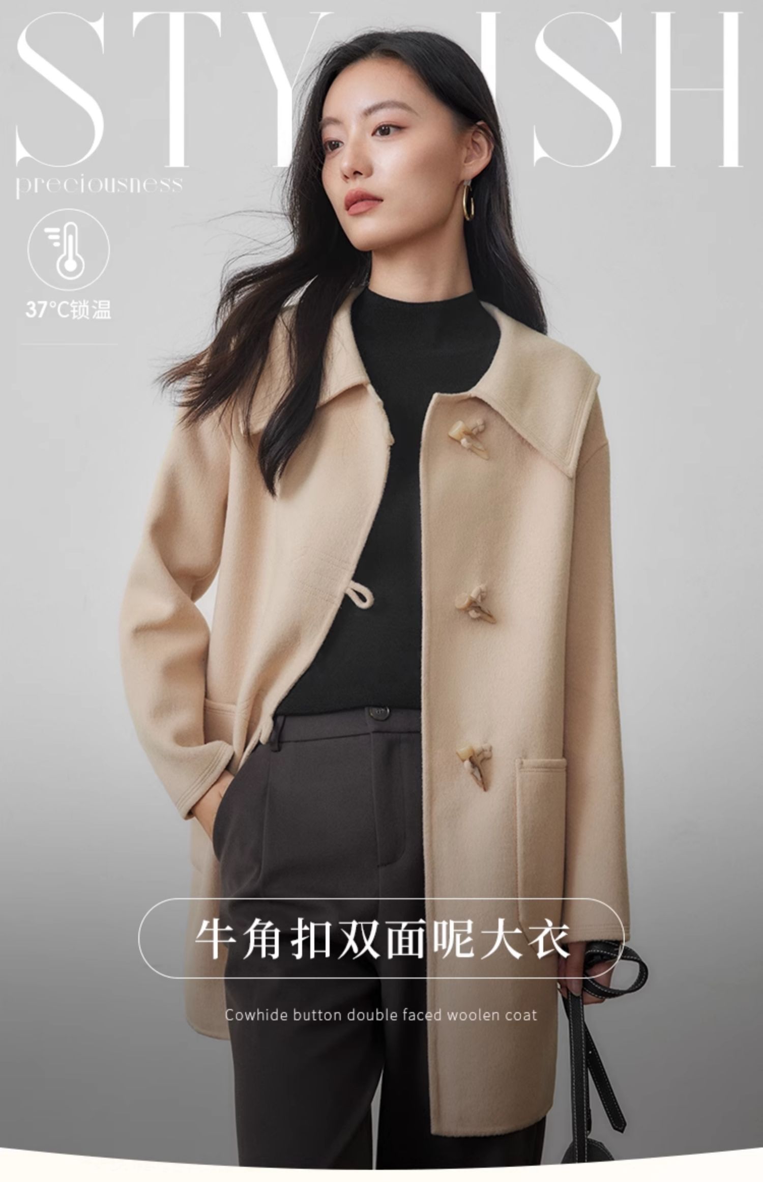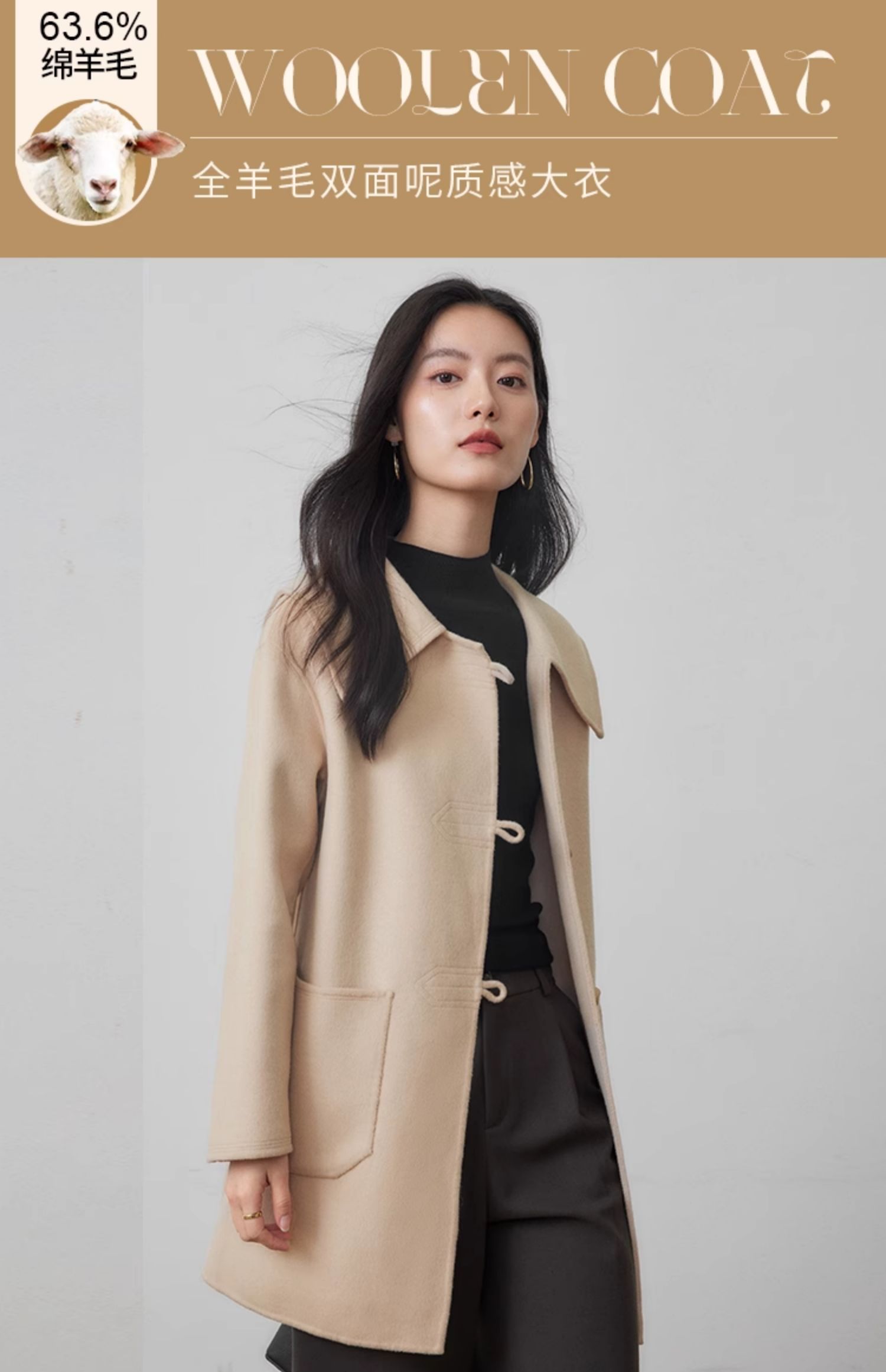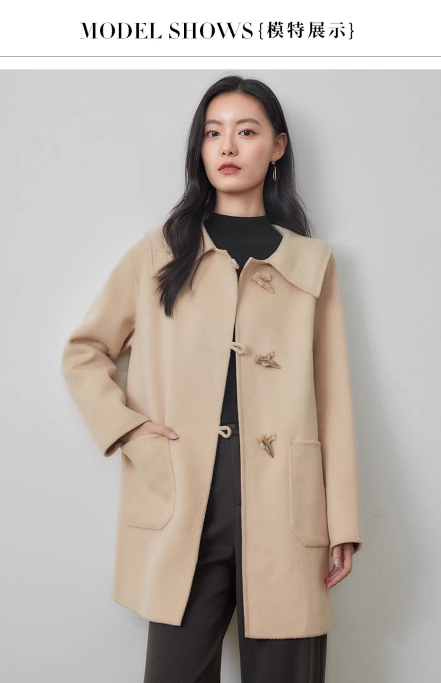 【年终特卖】熙世界牛角扣双面呢大衣秋冬海军风翻领羊毛呢子外套