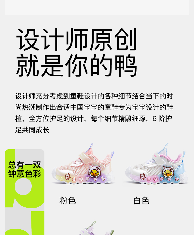 B.Duck小黄鸭童鞋夏季儿童时尚休闲灯鞋23-30 BY1583903