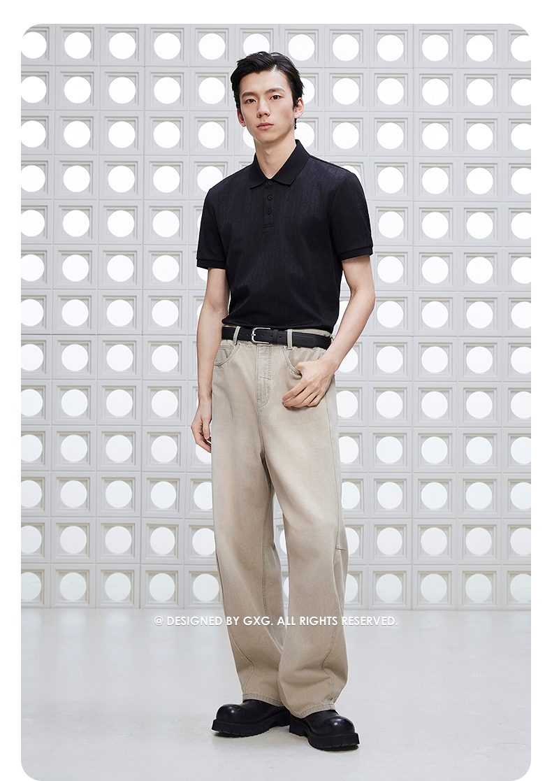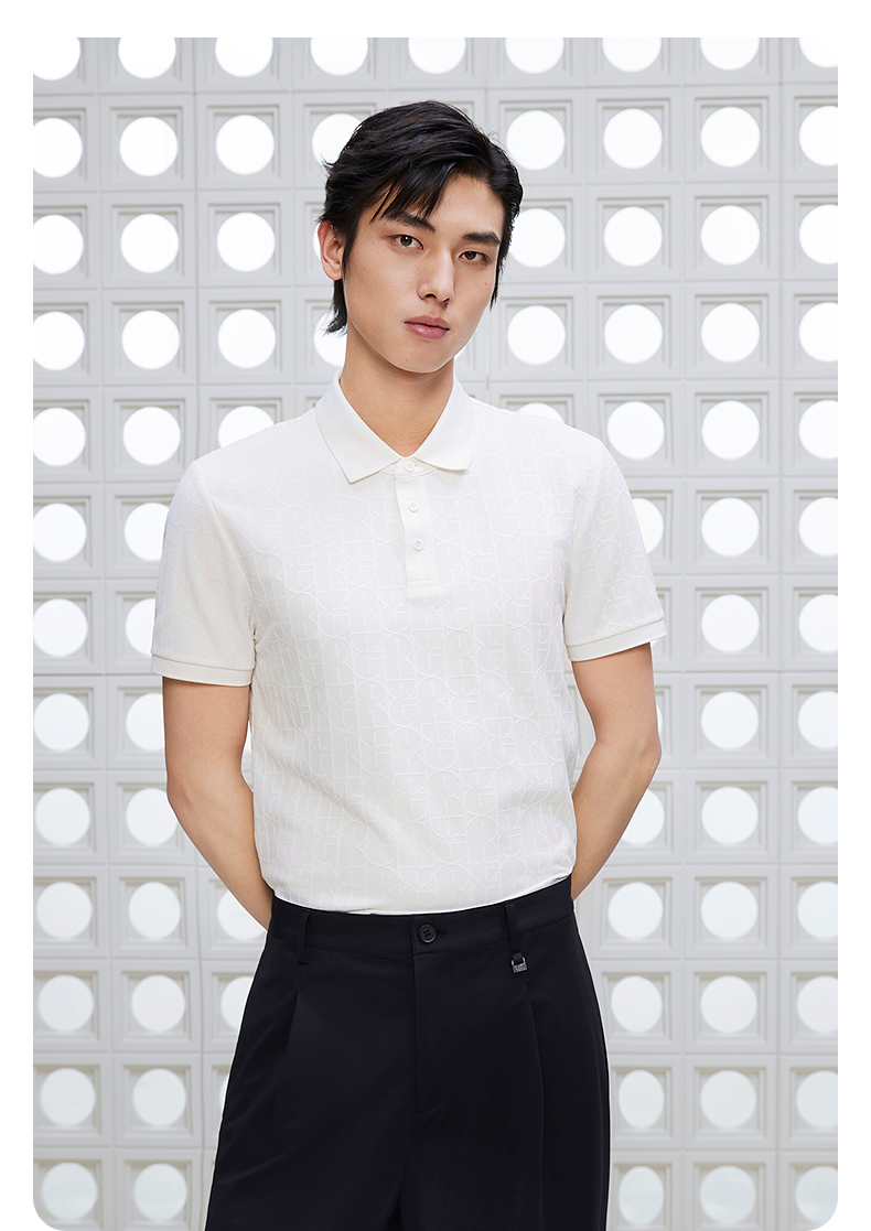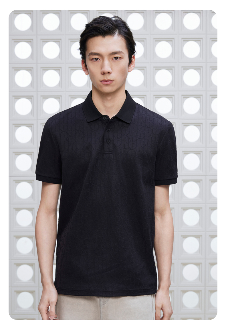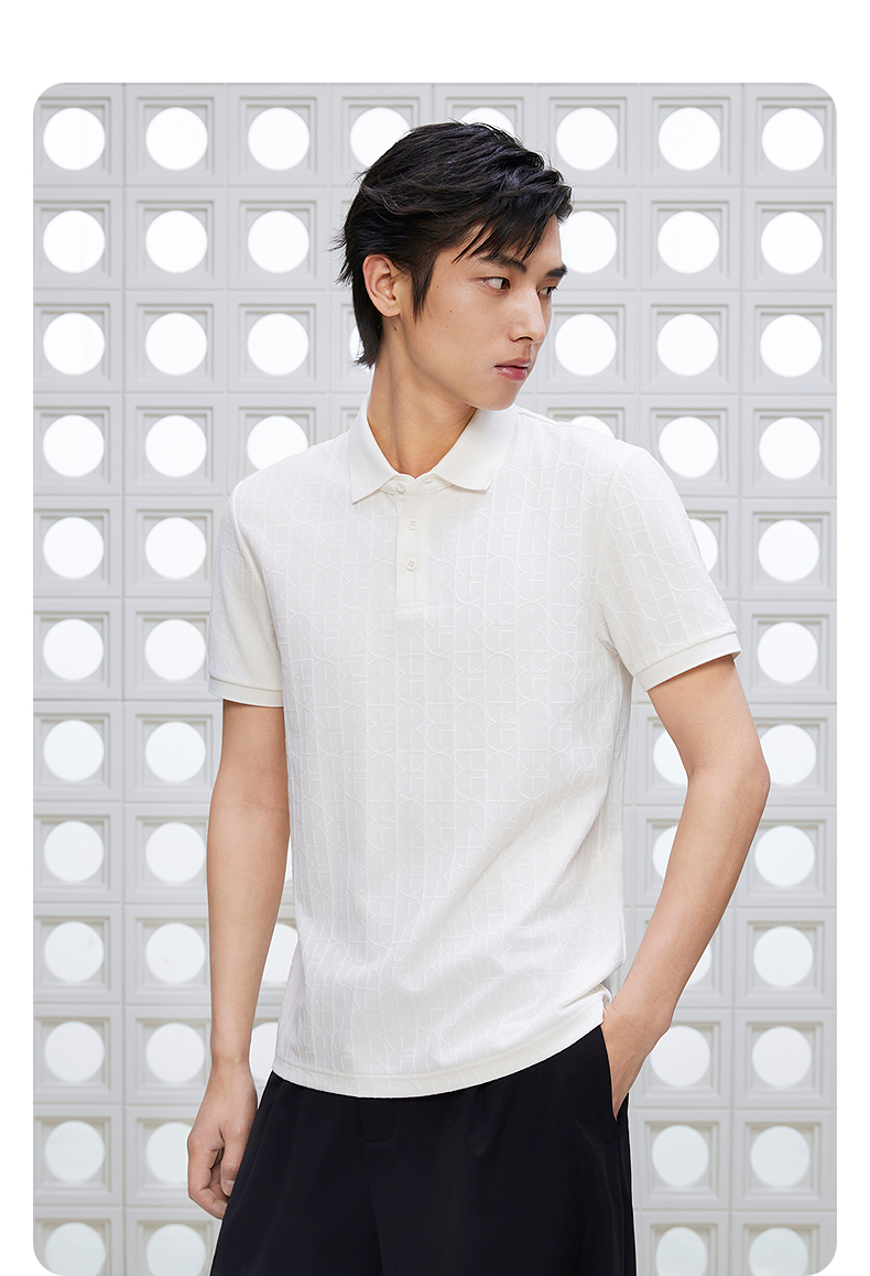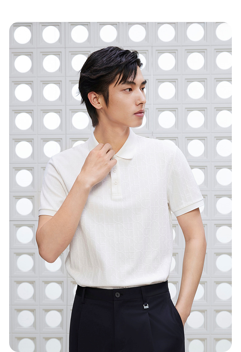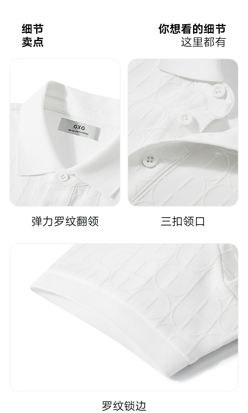 GXG男装 修身提花肌理polo衫男商务休闲上衣短袖T恤 25夏新品