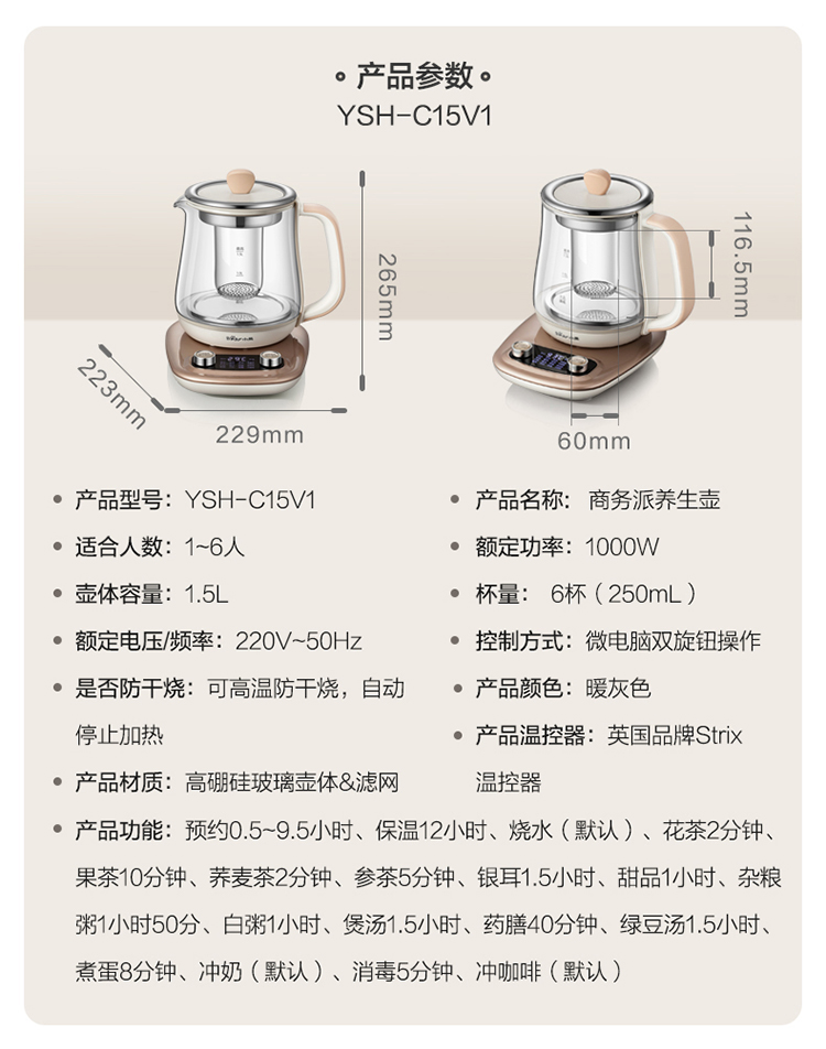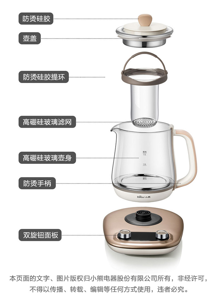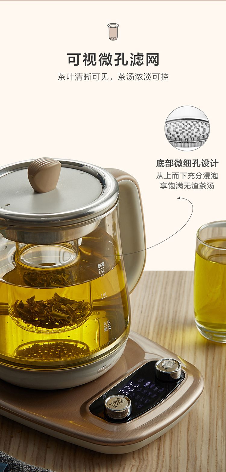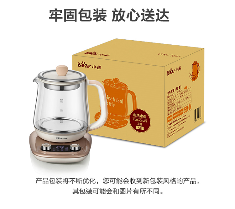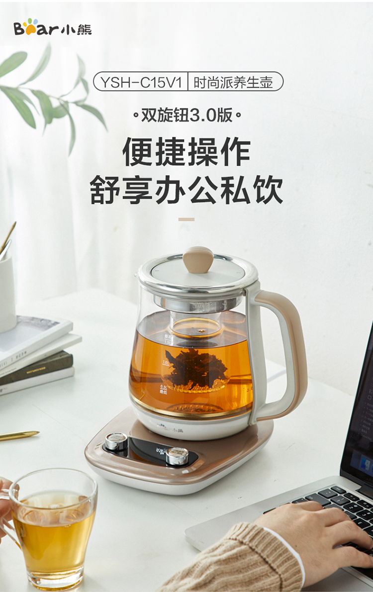 小熊(Bear)养生壶1.5L煮茶壶煮茶器 全自动加厚玻璃保温烧水壶 多功能电水壶烧水壶旋钮YSH-C15V1