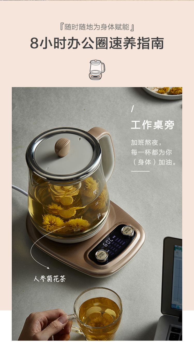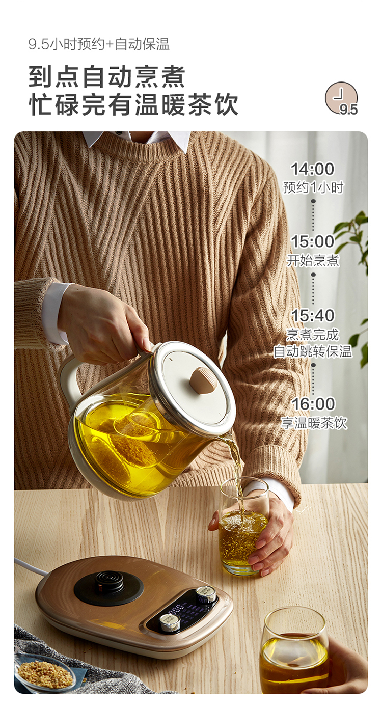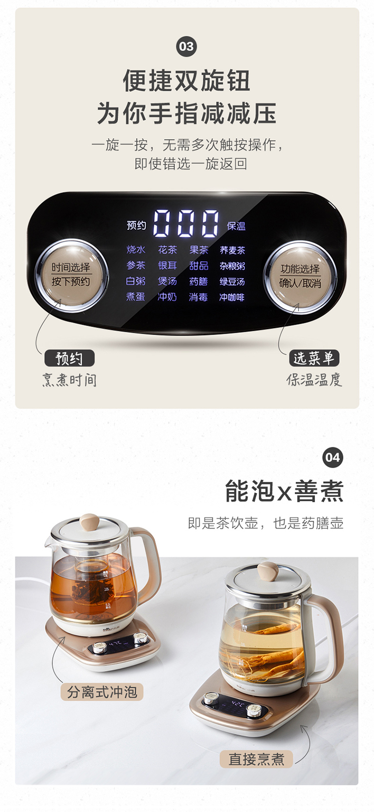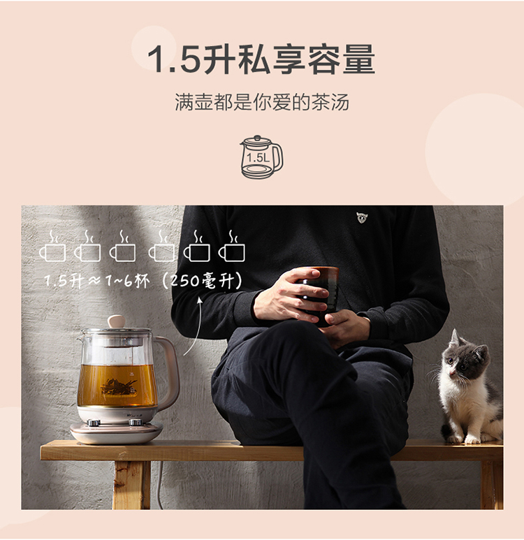 小熊(Bear)养生壶1.5L煮茶壶煮茶器 全自动加厚玻璃保温烧水壶 多功能电水壶烧水壶旋钮YSH-C15V1