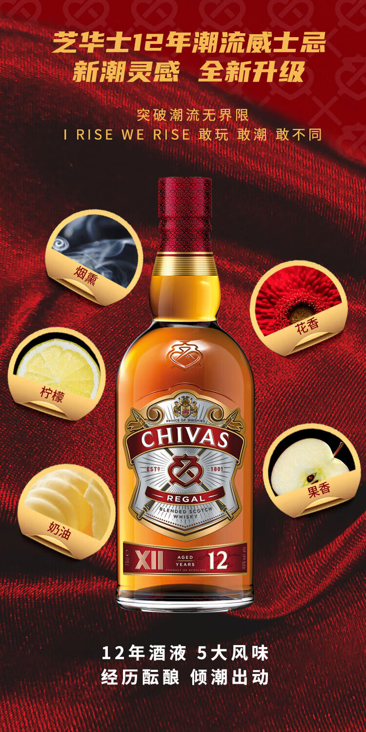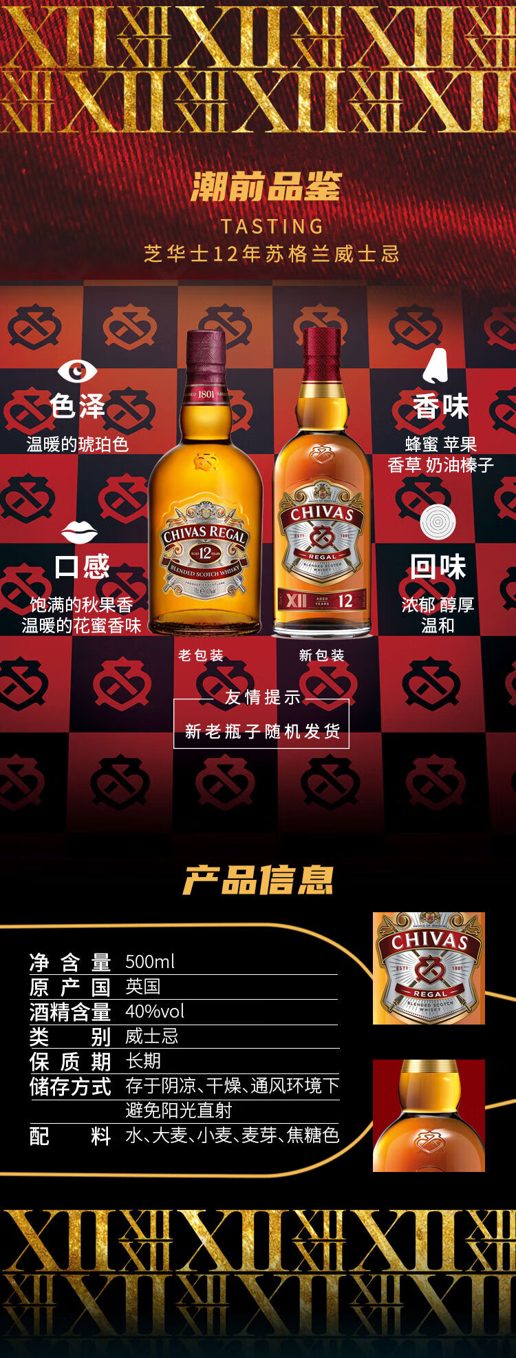芝华士12年苏格兰调和型威士忌洋酒500ml/1瓶/2瓶