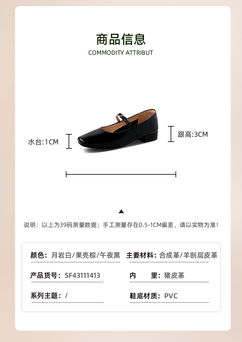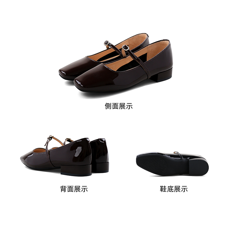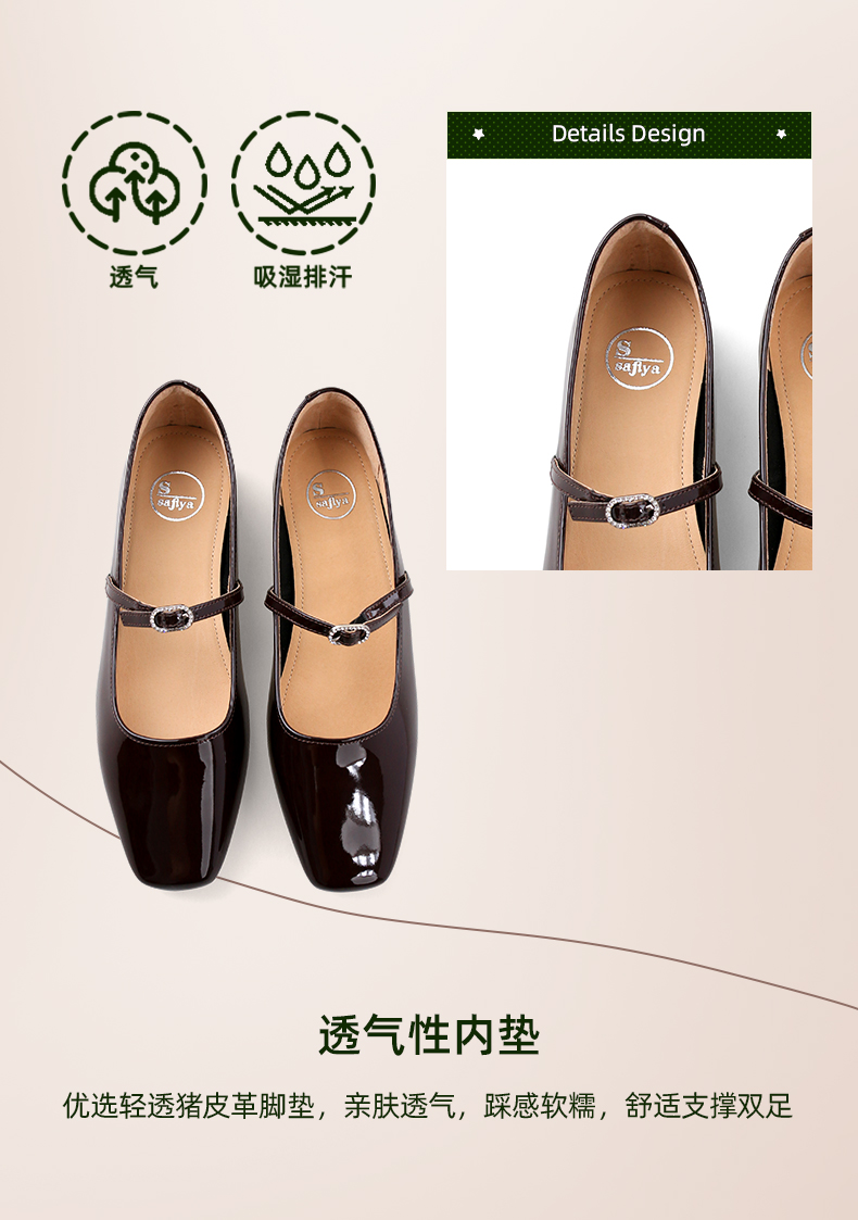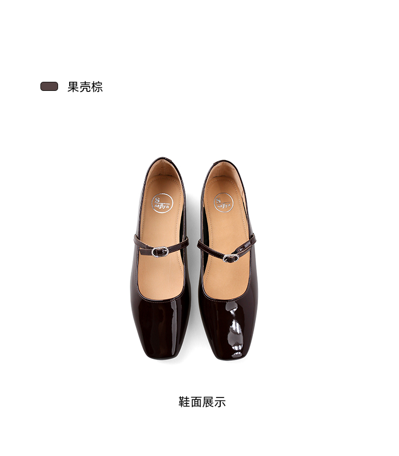 Safiya/索菲娅2024新款法式复古方头水钻一字扣玛丽珍单鞋 SF43111413