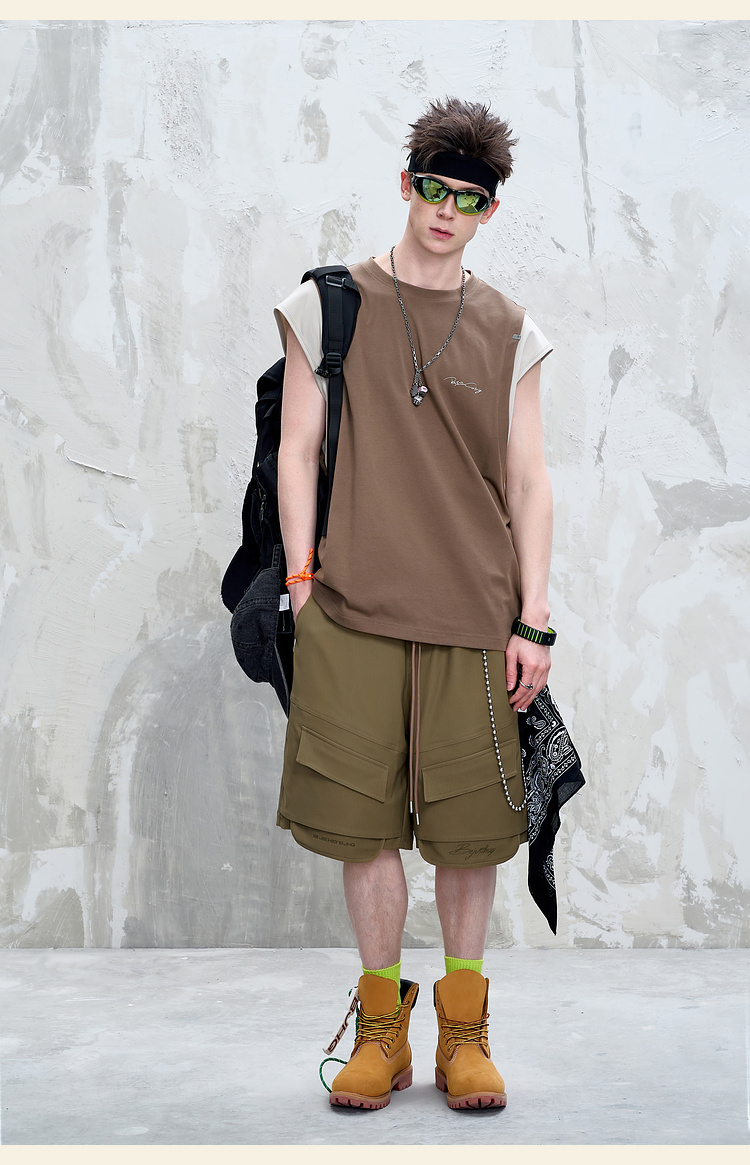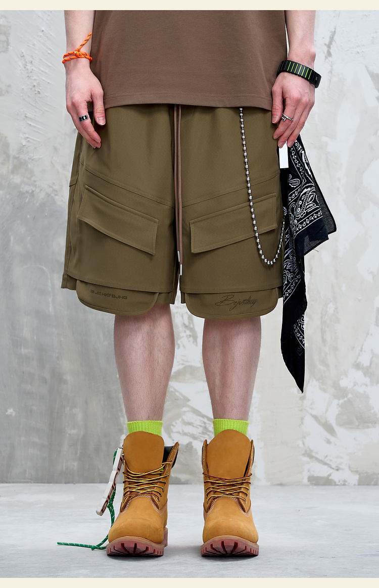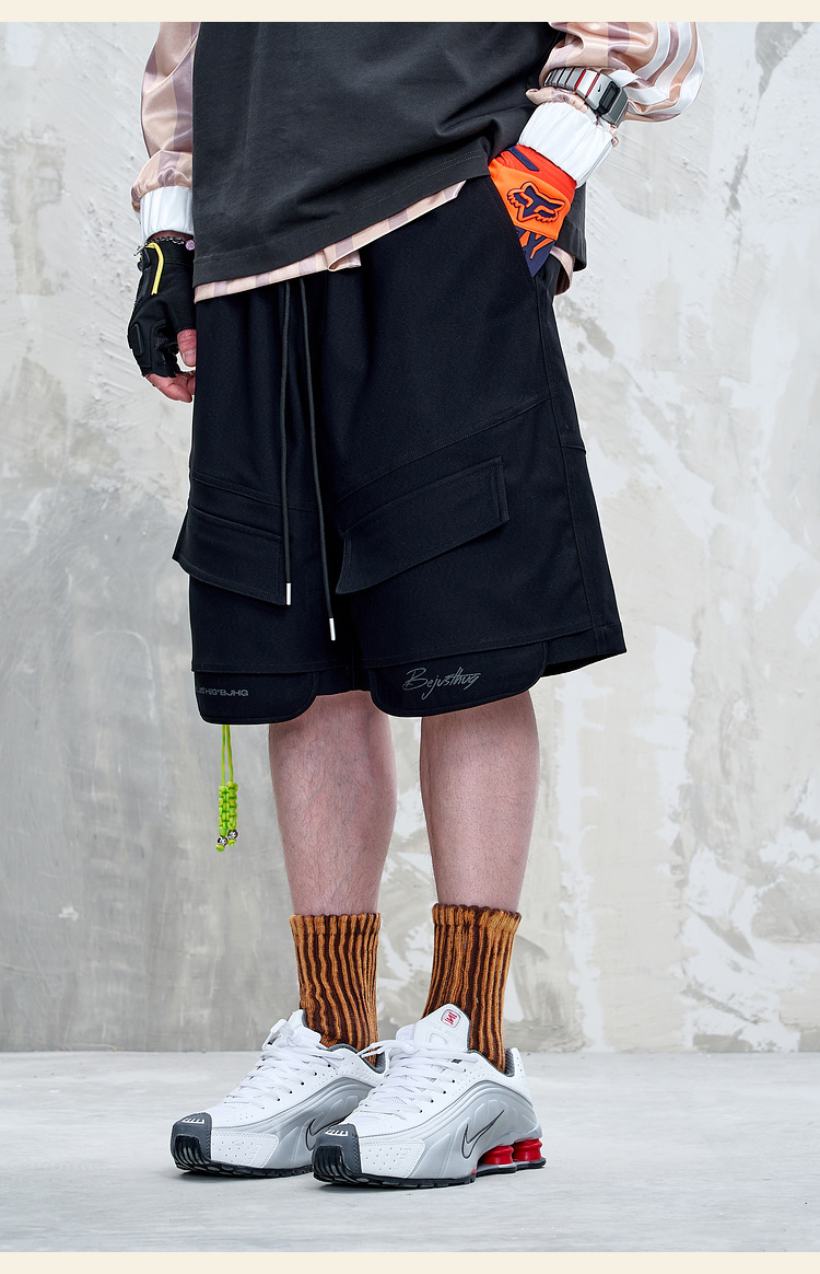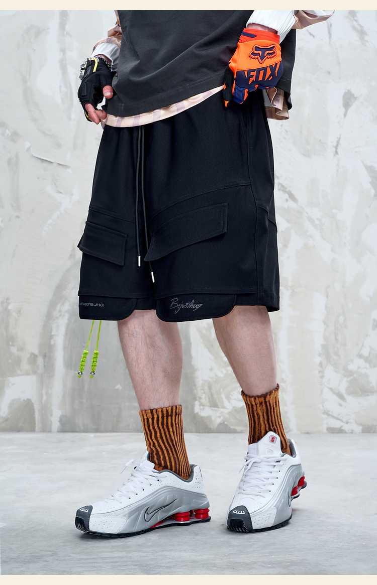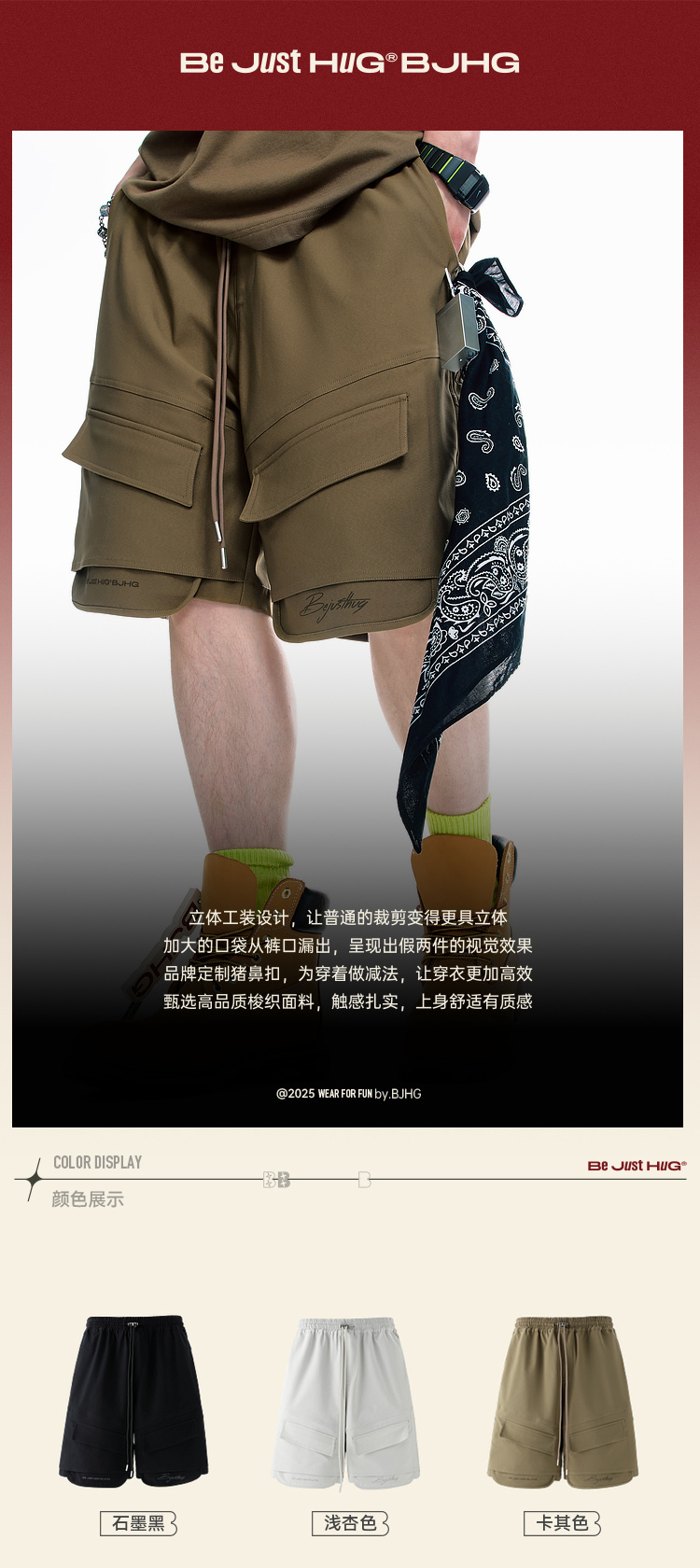 BJHG不计后果大口袋工装短裤男夏季2025新款潮牌假两件休闲五分裤