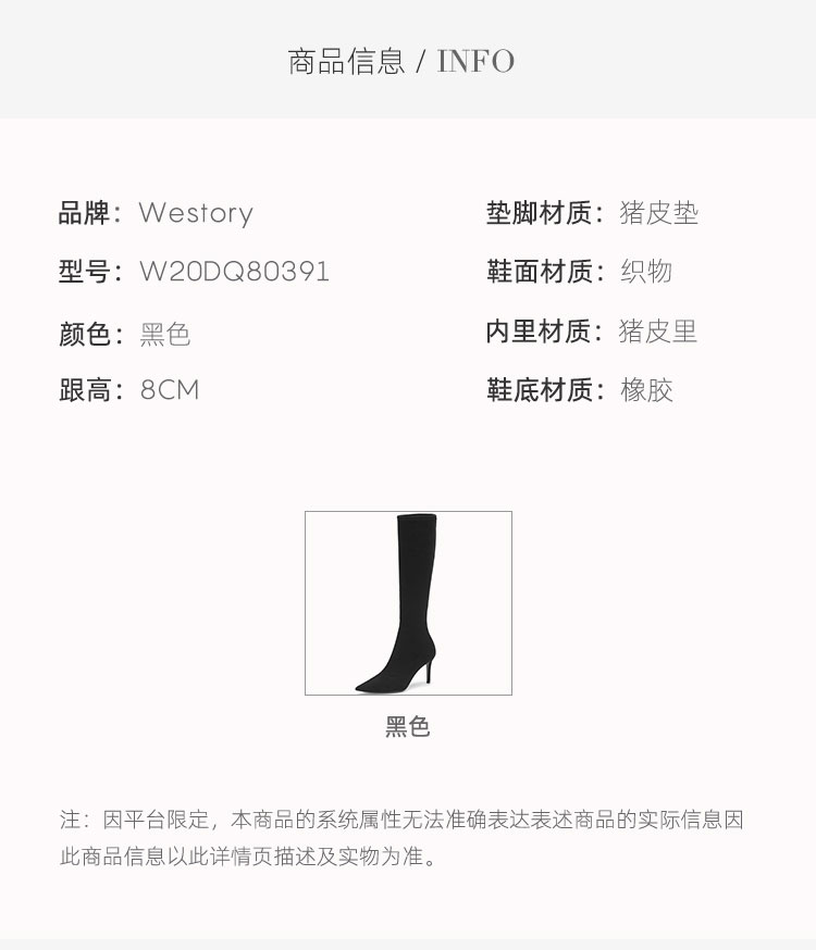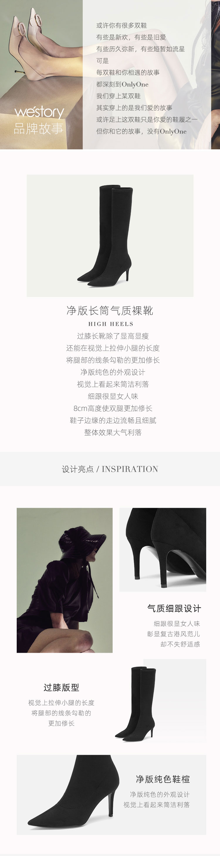 westory2020冬季新款纯色休闲时尚尖头高跟长靴女W20DQ80391