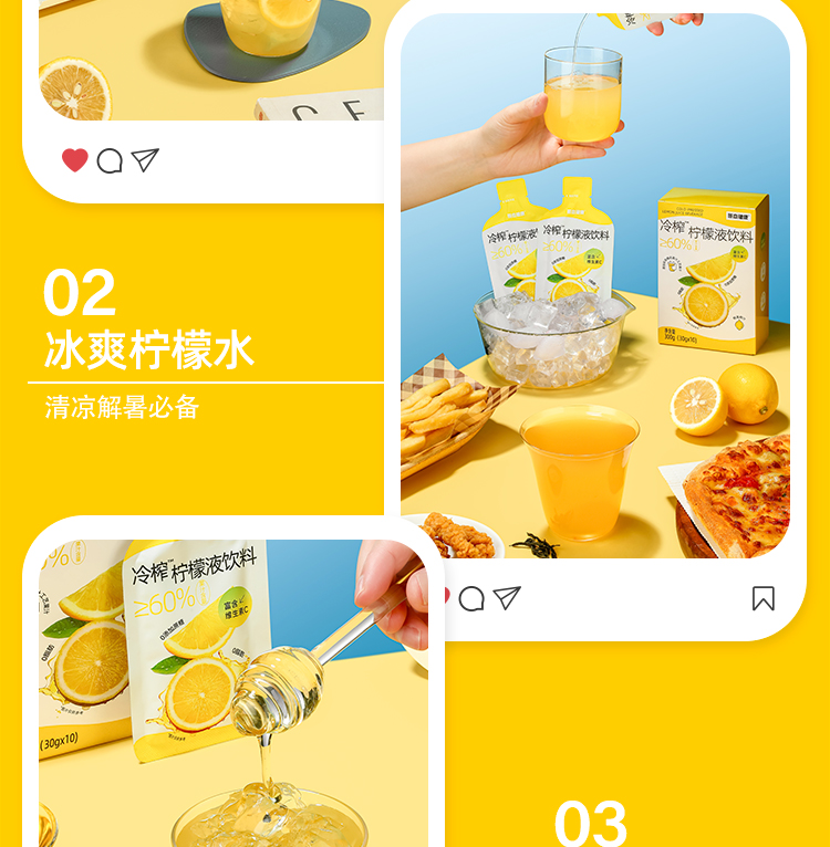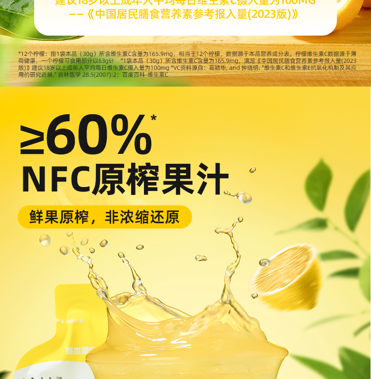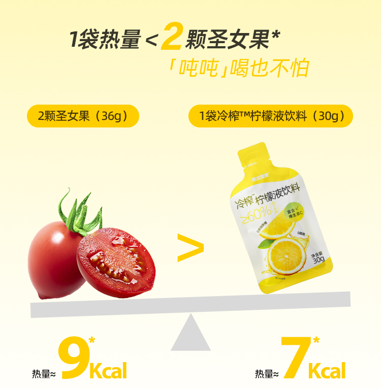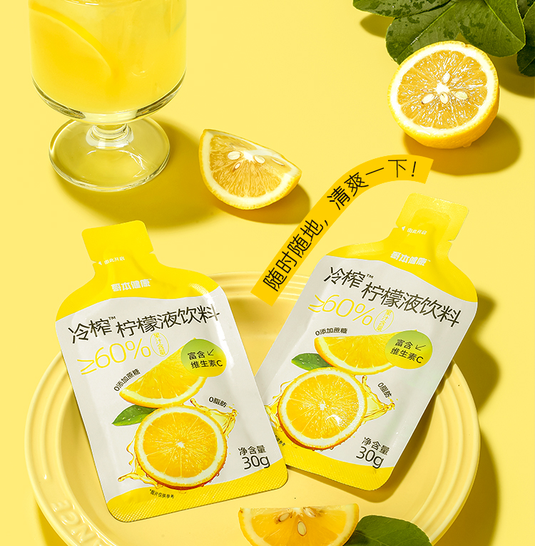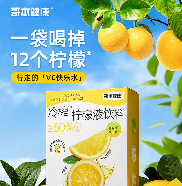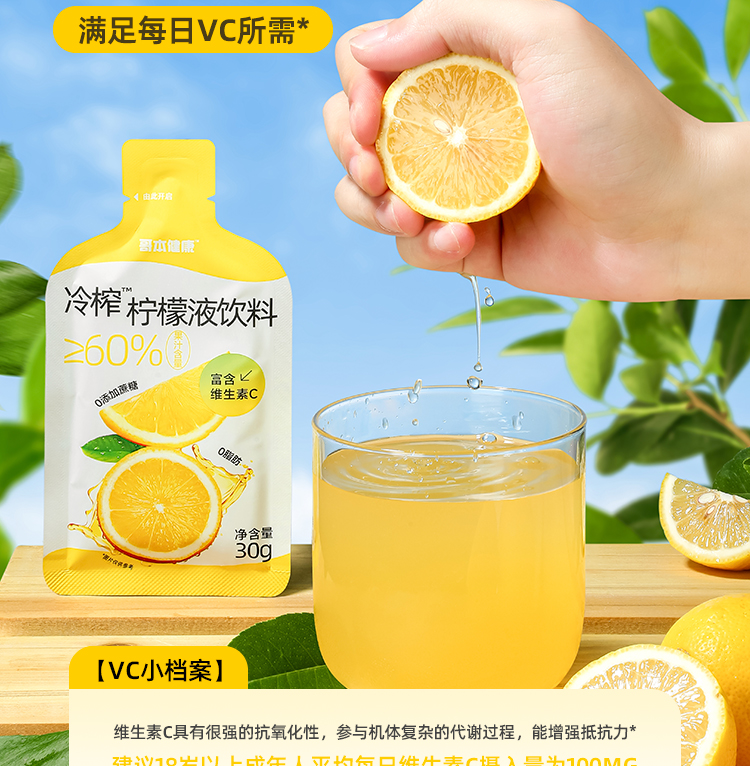 大餐解腻佳选!1袋约12个柠檬的VC含量!真果汁添加[哥本健康冷榨柠檬液饮料 不添加蔗糖 不添加防腐剂 每盒(30gx10袋)300g