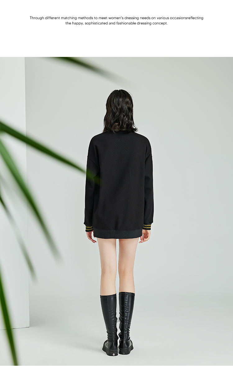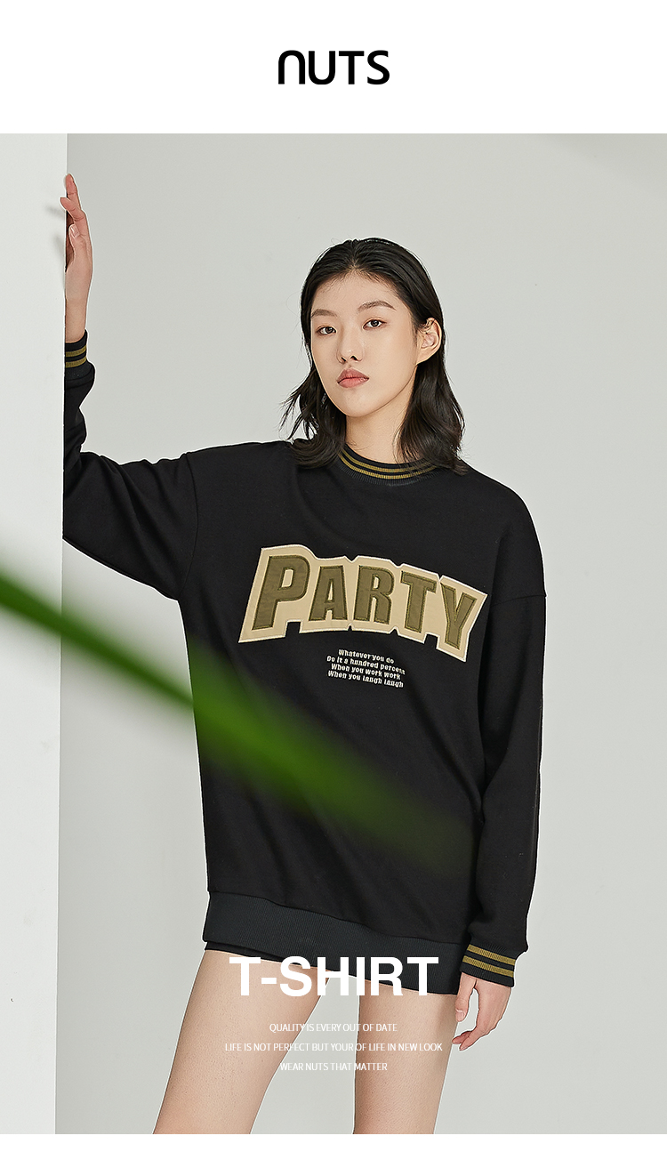 NUTS春季新品时尚纯色气质百搭撞色长袖T恤女312023195B