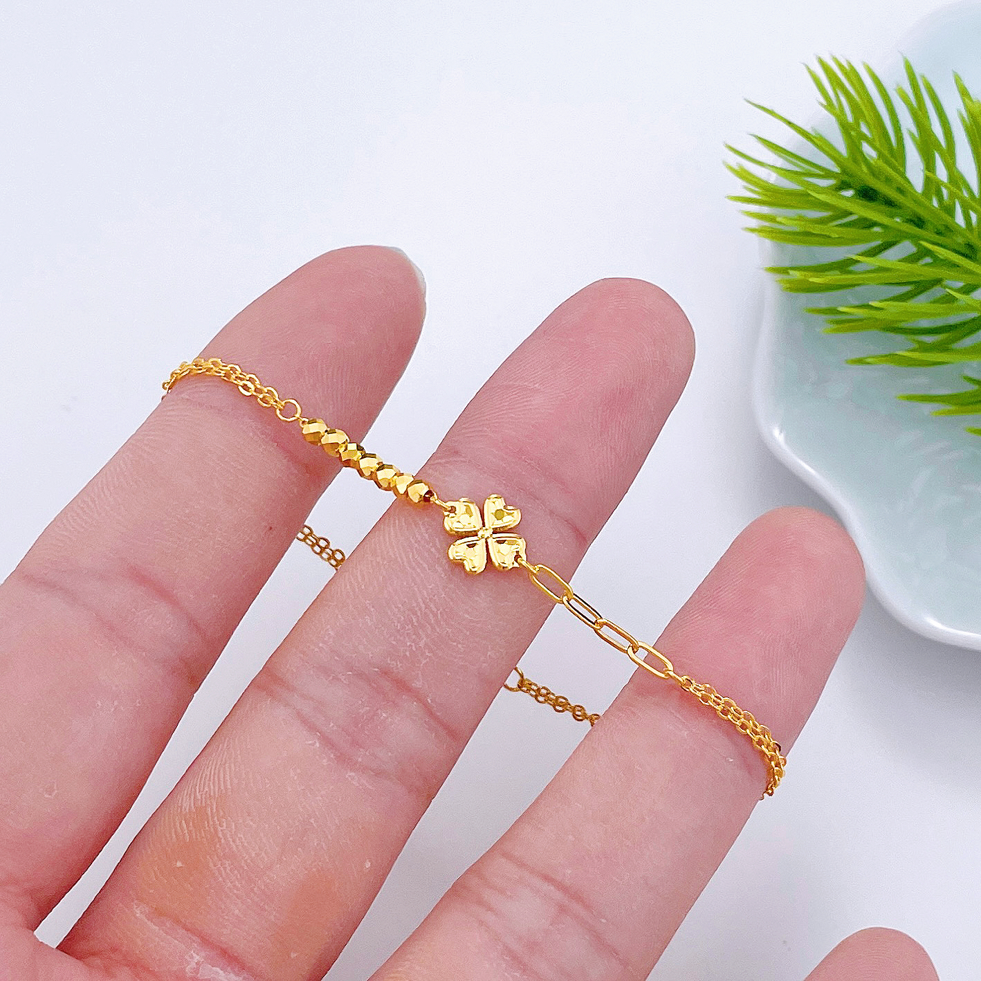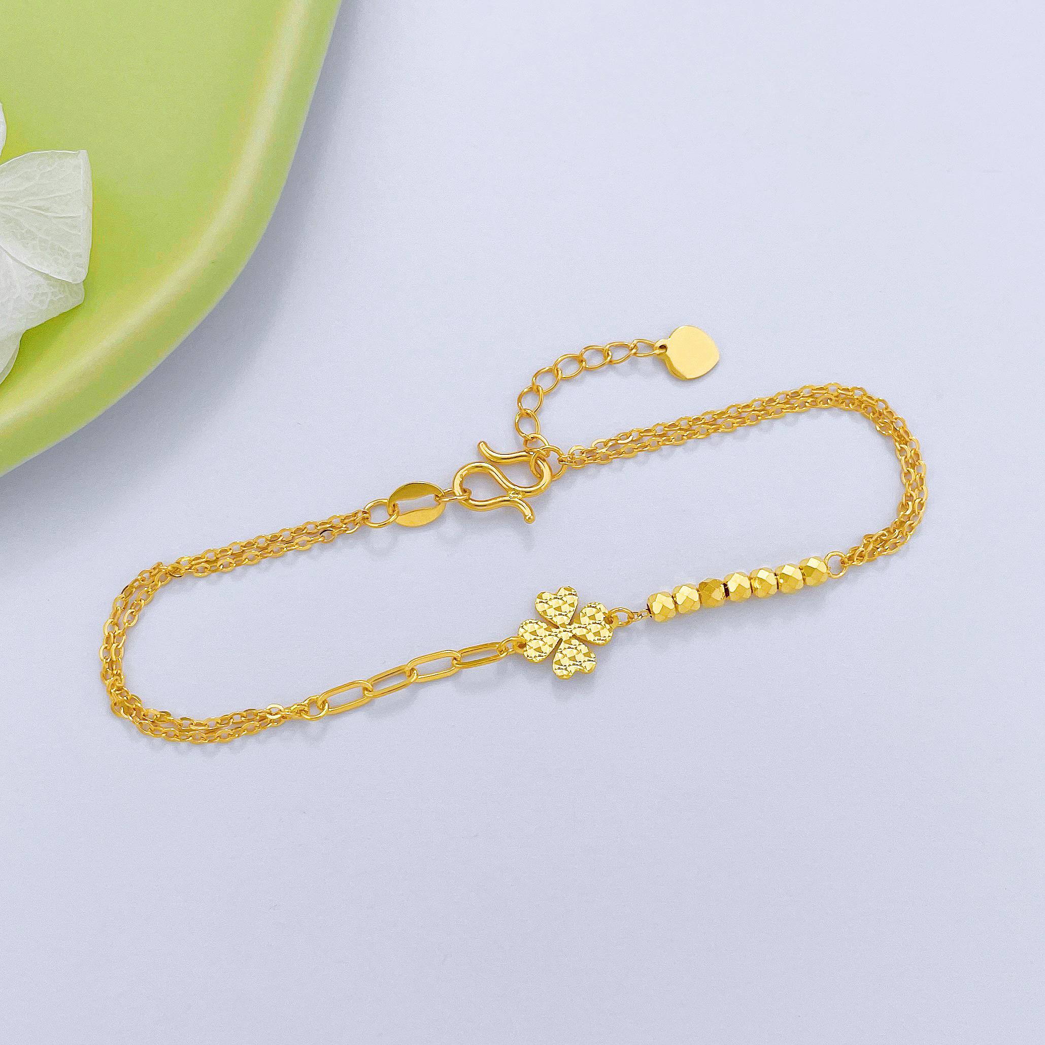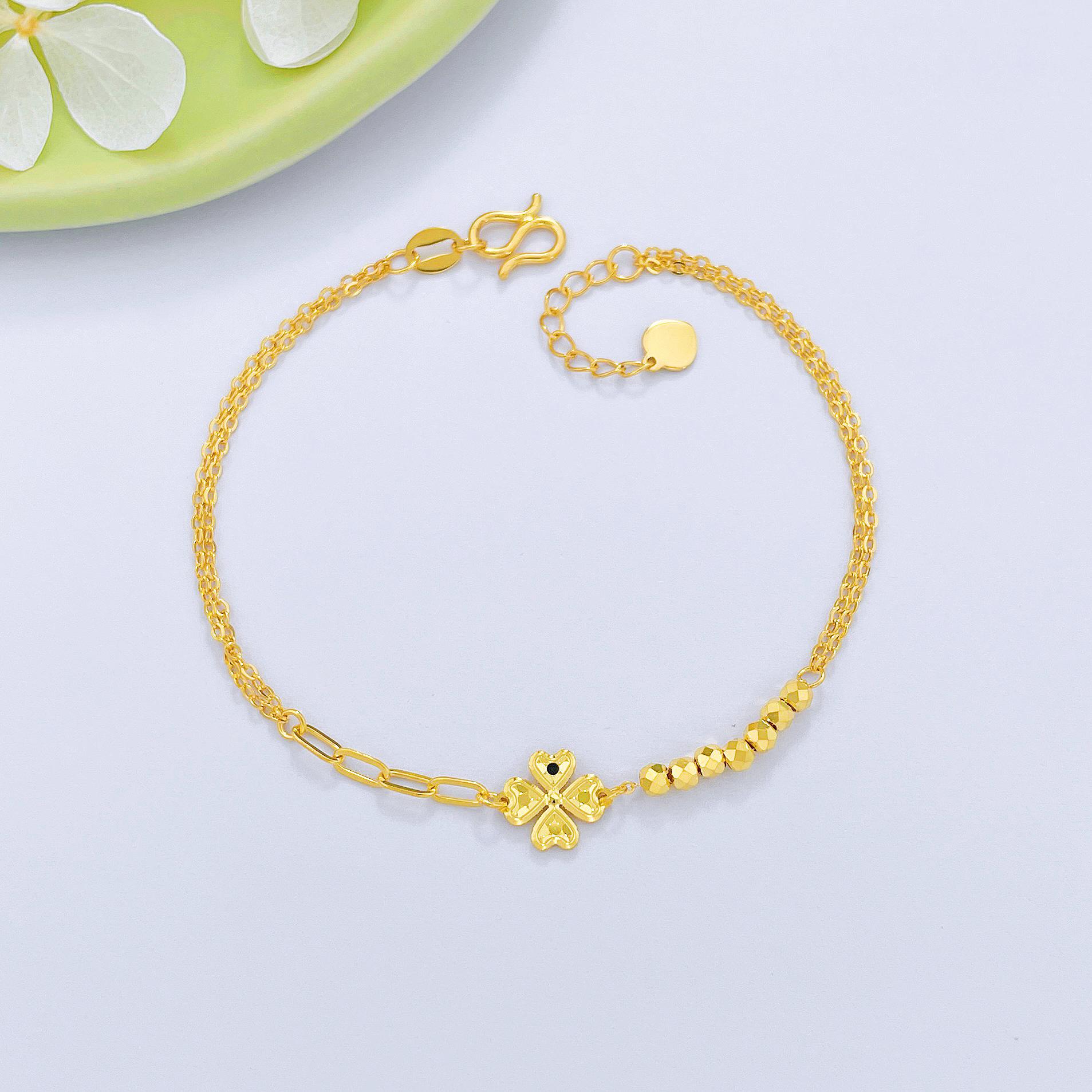 【限时克减150元】足金999 5G黄金调节双层间蹦迪珠鱼鳞四叶草手链(AG5GSL00118)预售产品下单后不退款不退货不换货不补差价