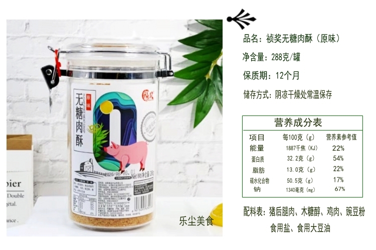 航.祯奖288克罐装无糖肉松肉酥中老年营养辅食