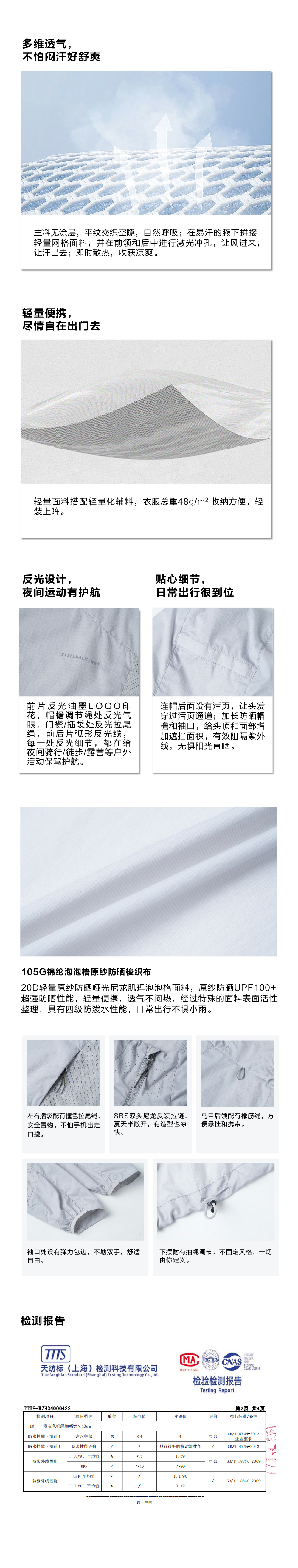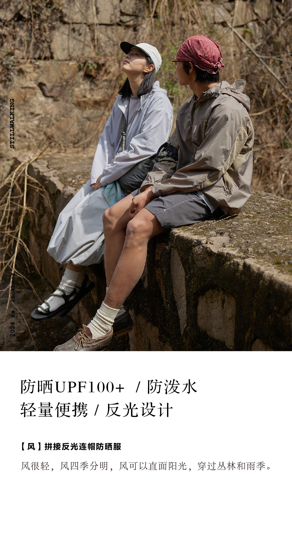 步履不停/4B23095C/户外登山海边防晒衫透气连帽反光防晒服