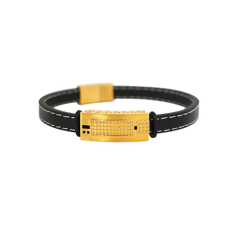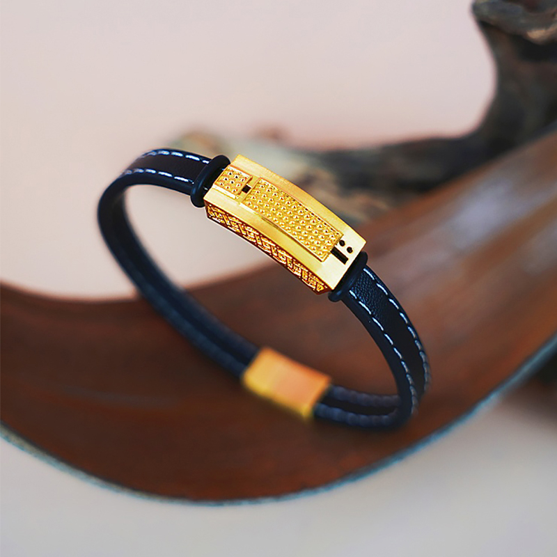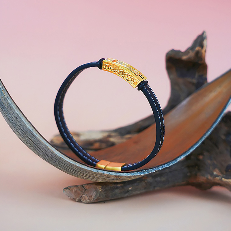 【现货】 足金999 5D工艺 宽面黄金手链男女同款配黑色皮绳【金重约2.6g】 【一物一广州省检标签】