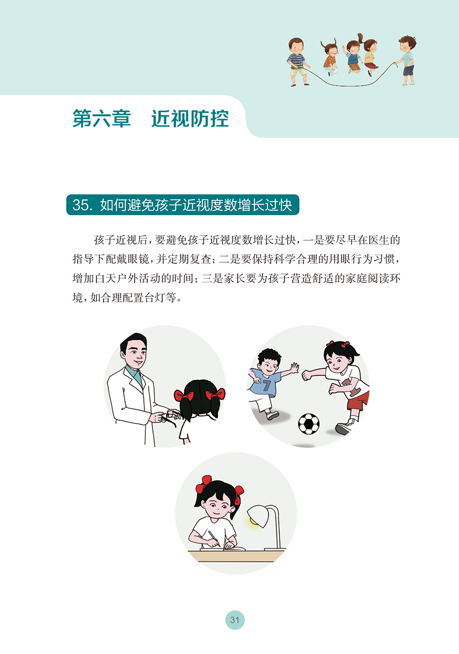 为进一步提高儿童青少年近视防控的健康素养水平,做好《中国公民健康素养——基本知识与技能》(以下简称《健康素养66条》)的宣传普及工作,近期中国健康教育中心启动了《健康素养66条》第五十四条“青少年处于身心发展的关键时期,要培养健康的行为生活方式,预防近视、超重与肥胖,避免网络成瘾和过早性行为”的科普解读工作,并编写本书,以期科学指导儿童青少年近视防控,保障儿童青少年的健康成长。本书以问答的形式,分为十章,以认识眼睛,近视的概念,近视的诊断,验光配镜,近视防控,常见的近视矫正手术,生活中近视的影响因素,儿童眼健康的常见误区,远视、斜视、弱视、散光与近视,低视力患者的康复为主要内容,涵盖了社会公众关注的儿童青少年近视的常见问题。