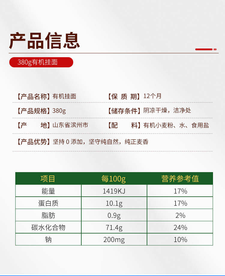 龙升源有机挂面380g/盒