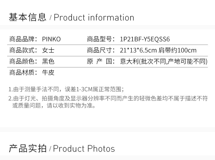 【香港直邮】QHSS19 Pinko 品高 女士挎包 1P21BF-Y5EQSS6