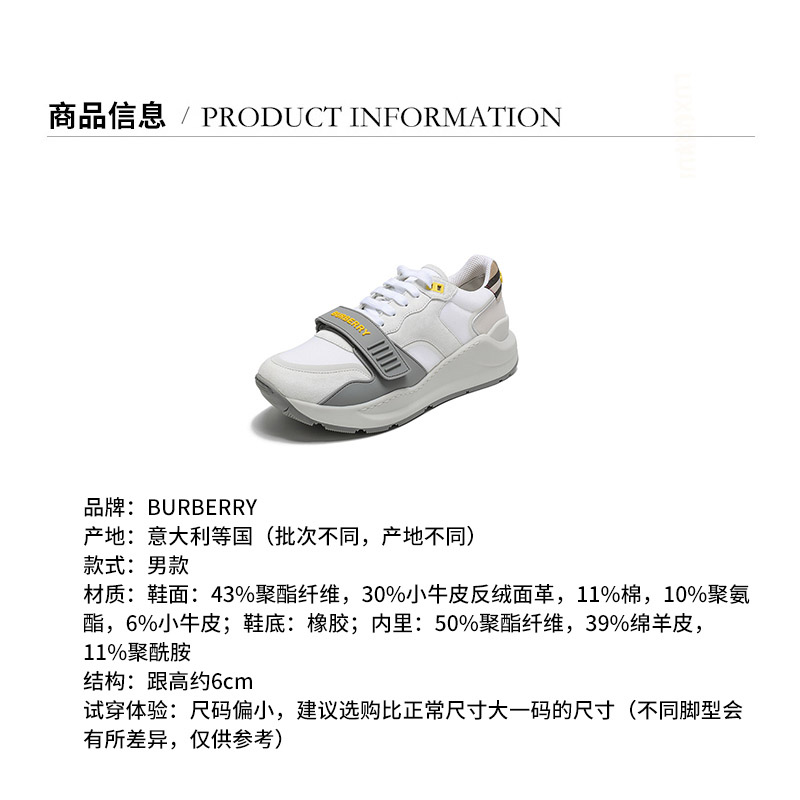 BURBERRY/博柏利 2021款 男款织物配皮系带休闲运动鞋 80372581