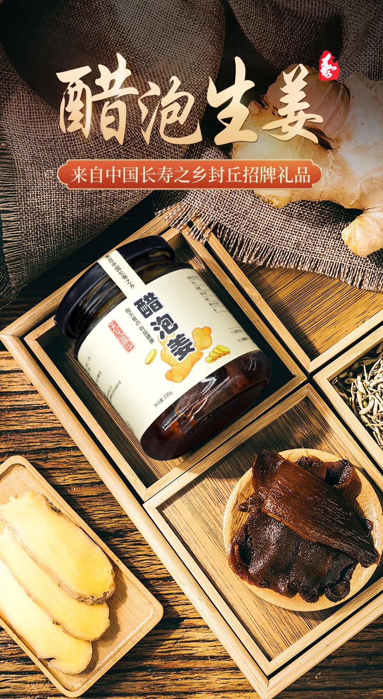 【中国长寿之乡-封丘特产】每天三片蜂蜜醋泡姜 酸甜可口 230克/瓶