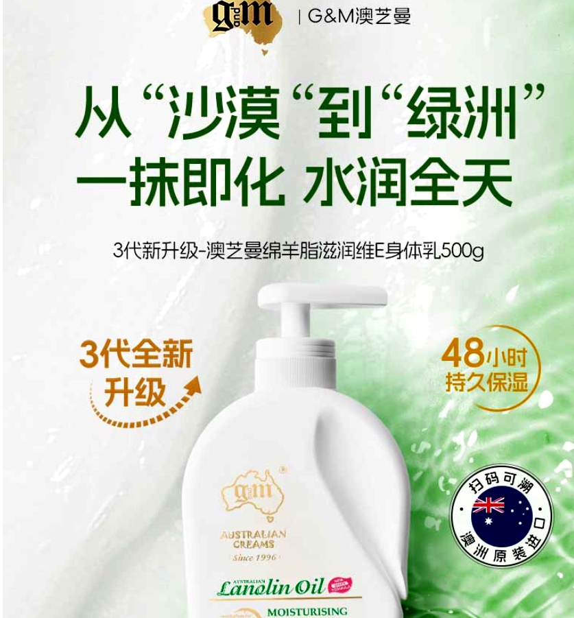 【全新升级】澳芝曼绵羊脂滋润维E身体乳500g/118247 新升级第三代