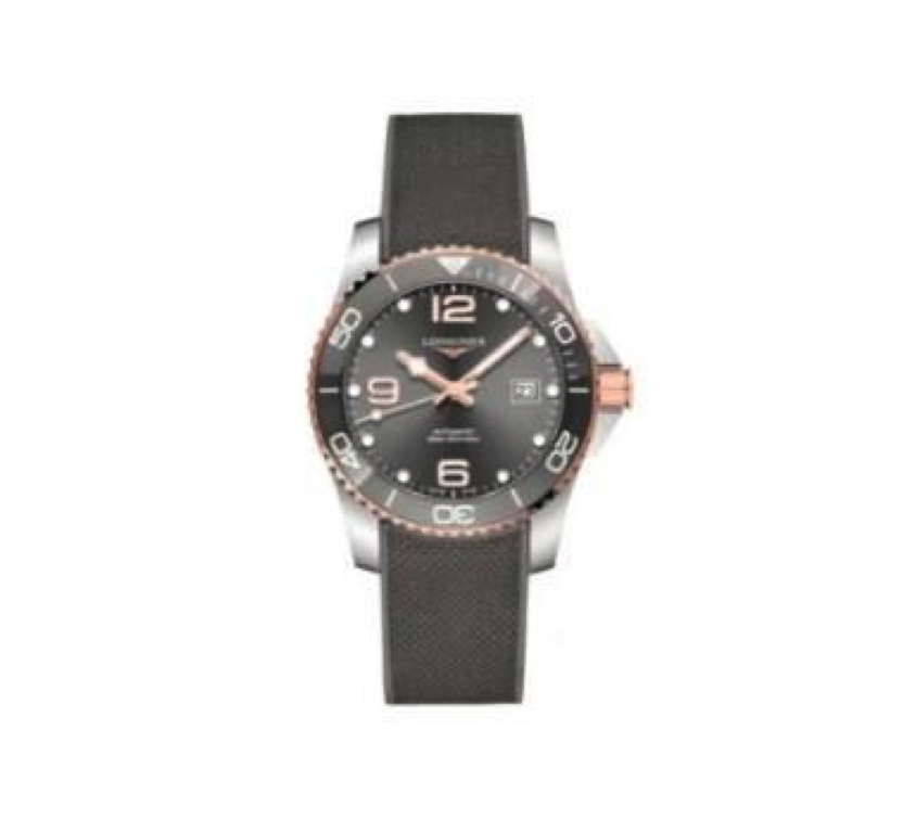 LONGINES 浪琴康卡斯潜水系列自动机械机芯瑞表男瑞表41mm灰色表盘陶瓷表圈橡胶表带