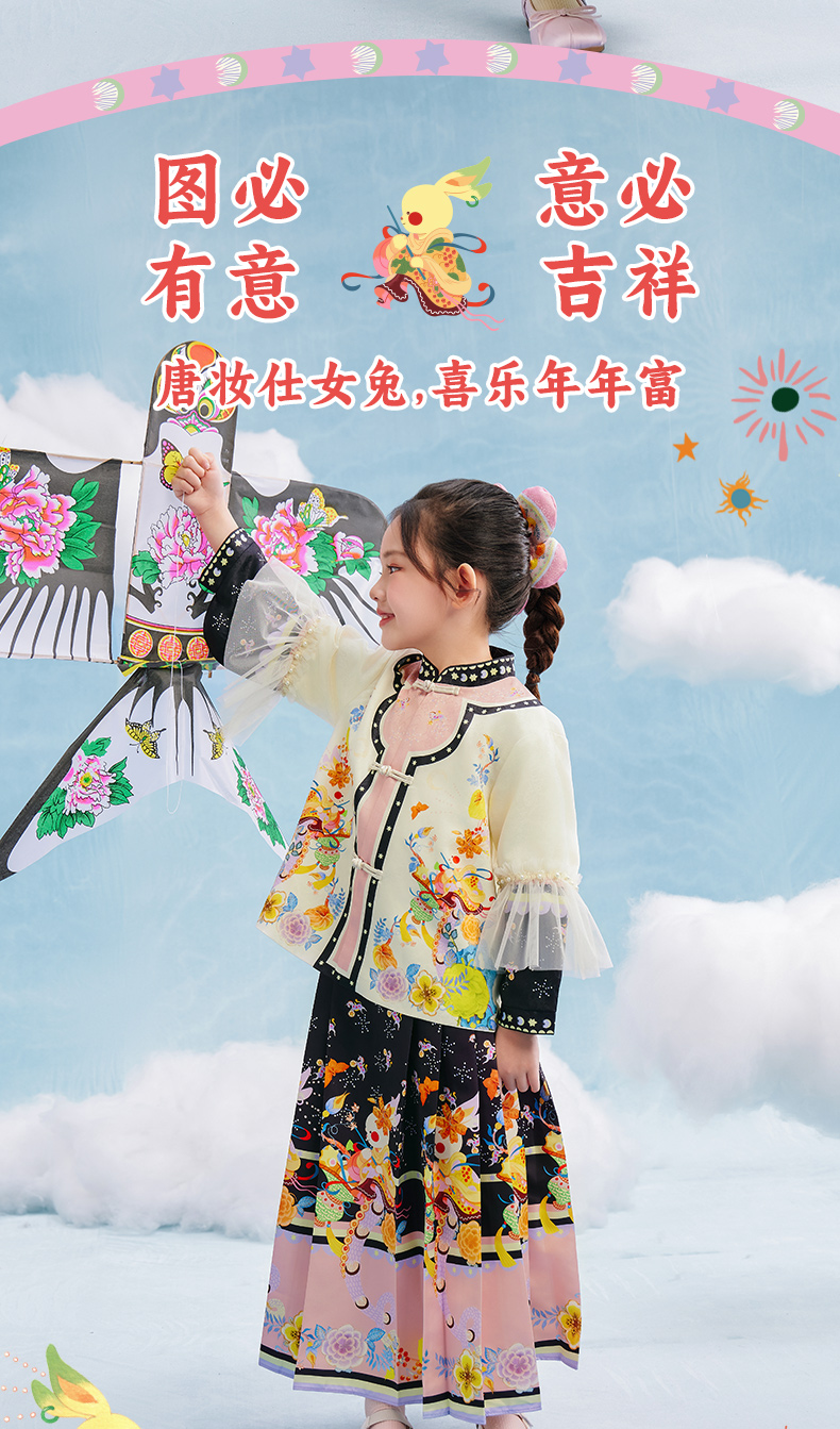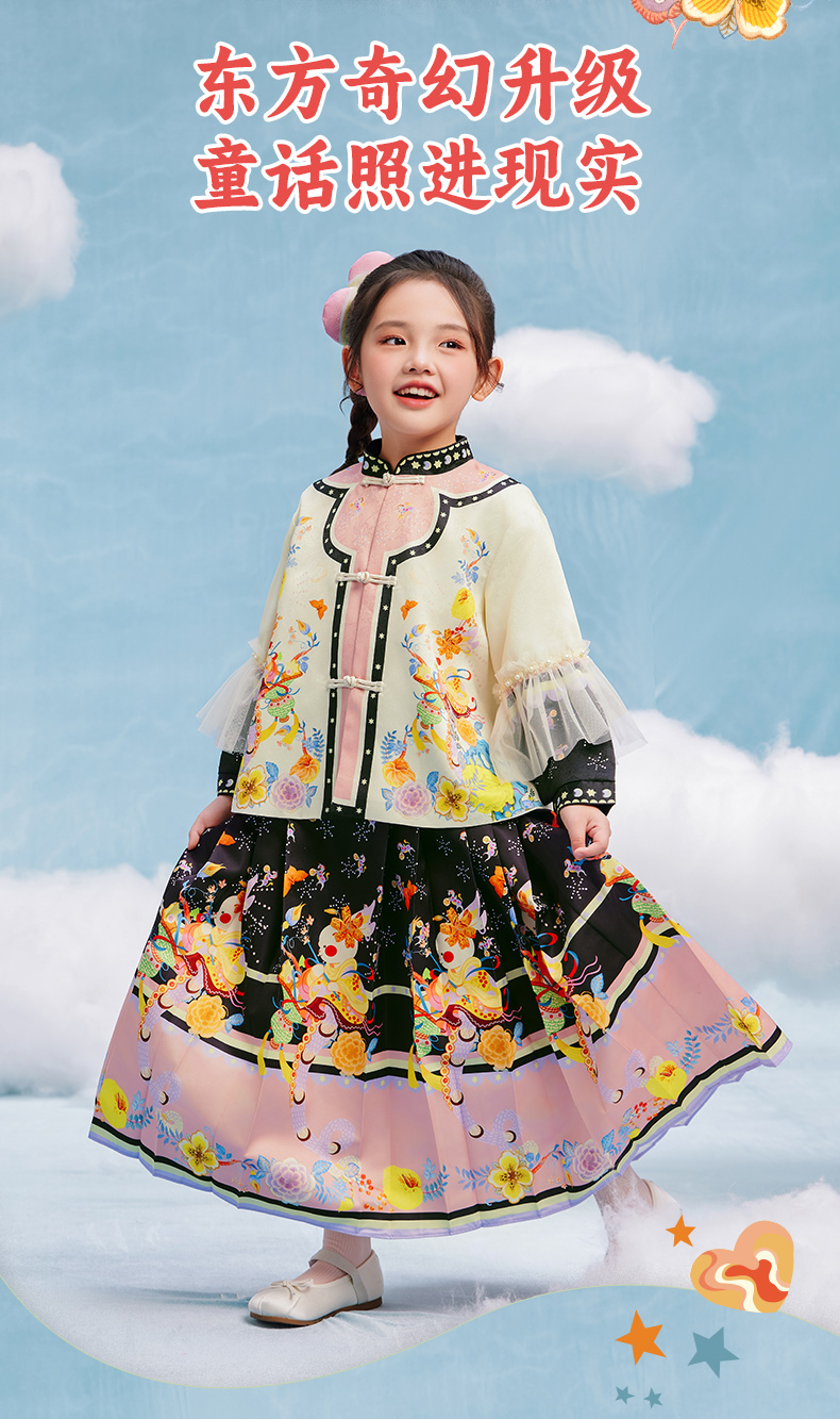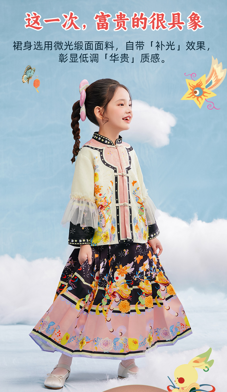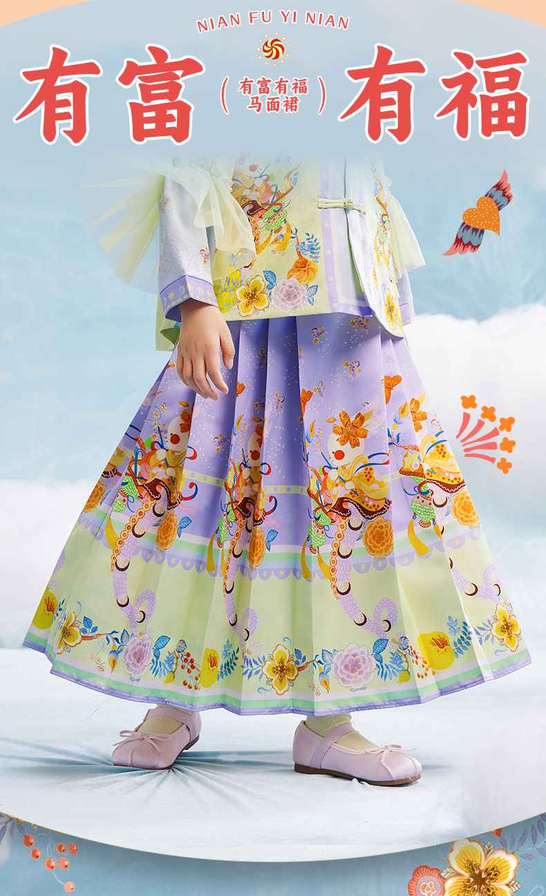 年衣童装女童马面裙半身裙2025春新款古装儿童汉服唐装中式公主裙子有富有福马面裙