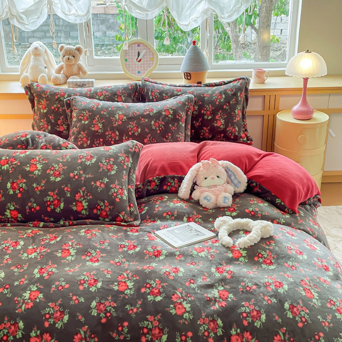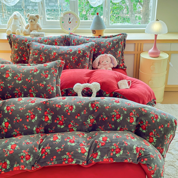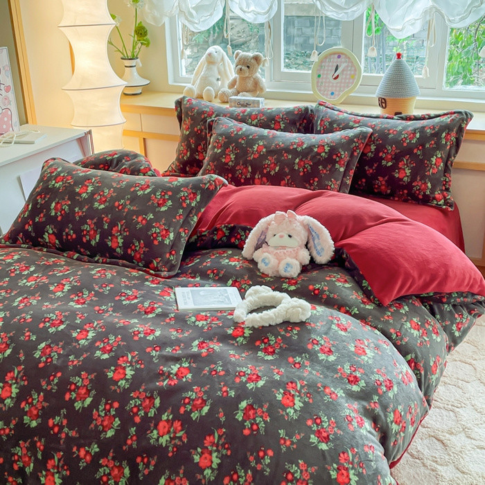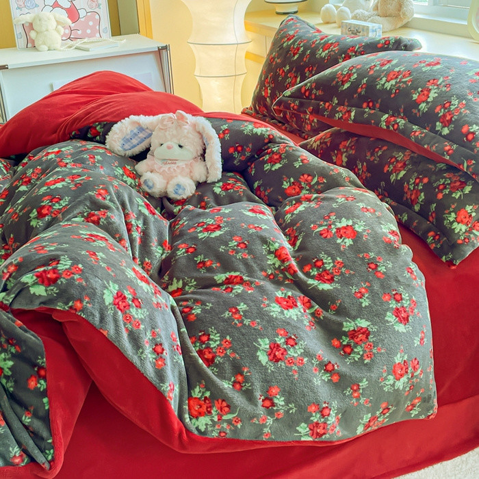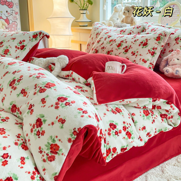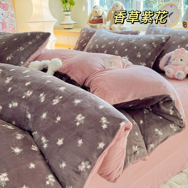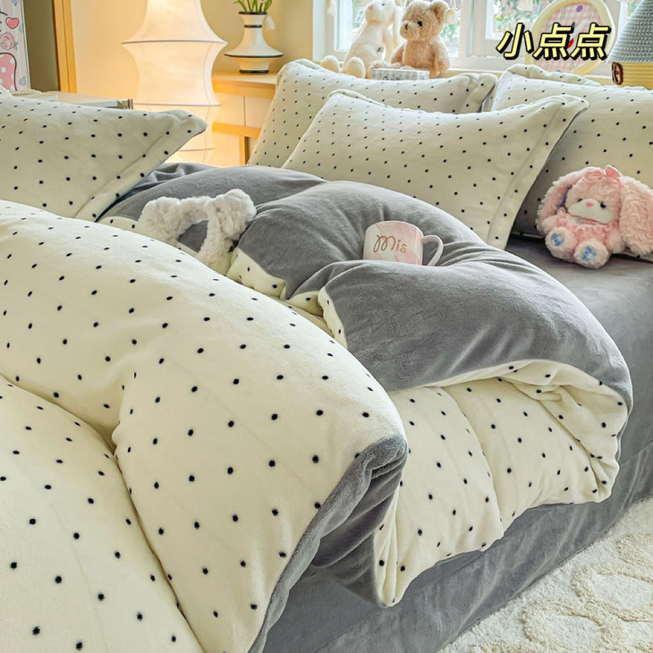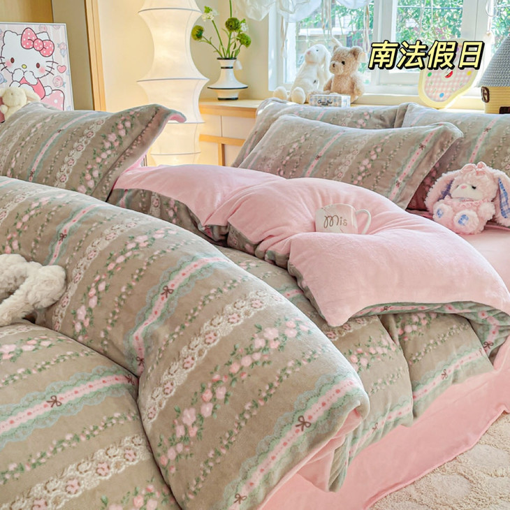 牛奶绒被套毯四件套——心动之选 不负睡眠|时光双面牛奶绒四件套印花四件套,暖进你的心里! 懂你的温暖,慵懒的享受着舒服睡眠体验园 这款甄选高克重牛奶绒面料制作 柔软舒适,绒毛细腻厚实耐用保暖强! AB版设计,A版时尚图案B版纯色平铺不管正反,都是想给你的温柔柔软顺滑,感受冬日温暖"面料中植入了抗静电导丝能够有效防止静电! 从此告别静电,无忧睡眠,可机洗可水洗,环保活性印染,安全舒适不易掉色染色!