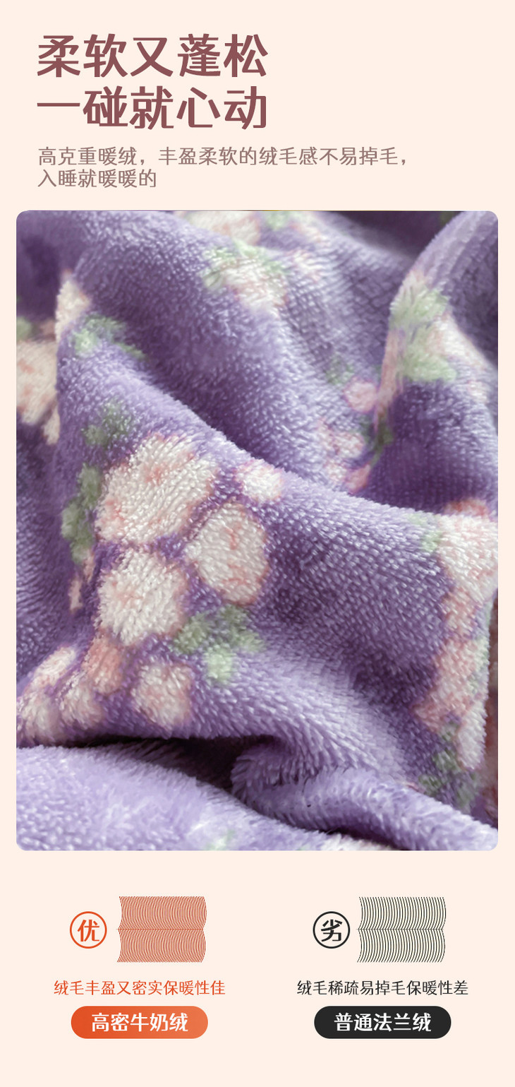 高克重牛奶绒|躲进去瞬间升温 绒毛丰盈厚实,贴身柔软不压身 秋冬再也不怕冷被子 10cm加密导电丝|静电烦恼一键清零 翻身无噼啪,头发不炸毛 第二天起床依旧柔顺动人~