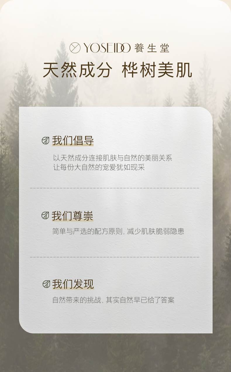 养生堂YOSEIDO,高端护肤品牌。专研白桦原液•来自北纬45° 的细胞抗老成分,源自1772年《丹麦药典》。不额外添加一滴水,让青春永续。