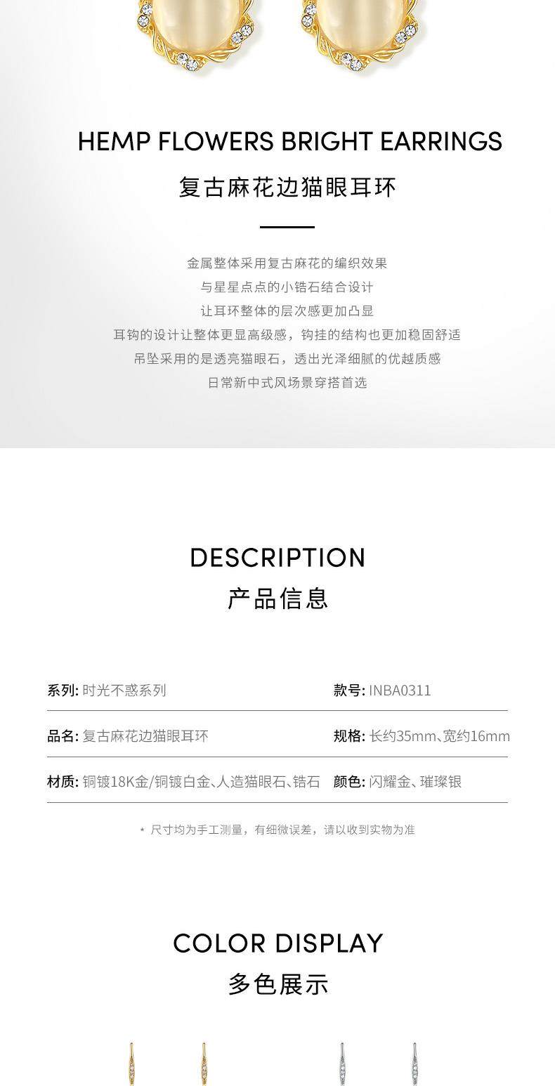 INBA0311 复古麻花边猫眼耳环|INCH EDITION 时光不惑系列