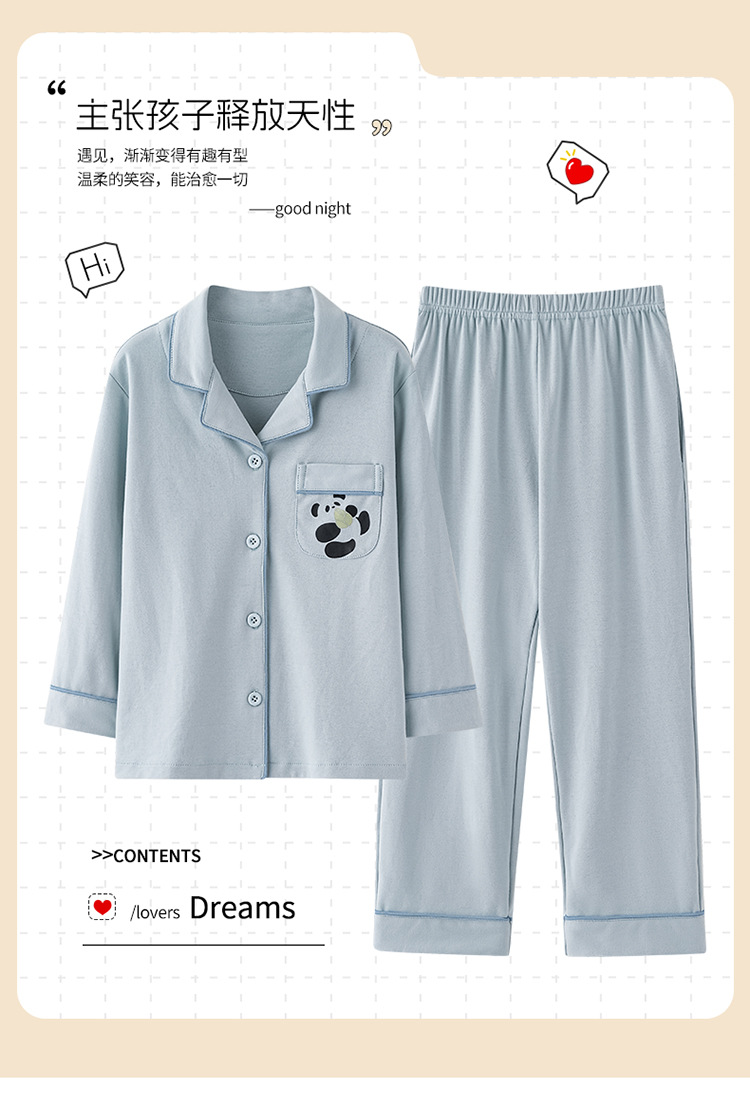 【专柜大牌品质】儿童春秋全棉睡衣 中大童翻领纯棉家居服套装