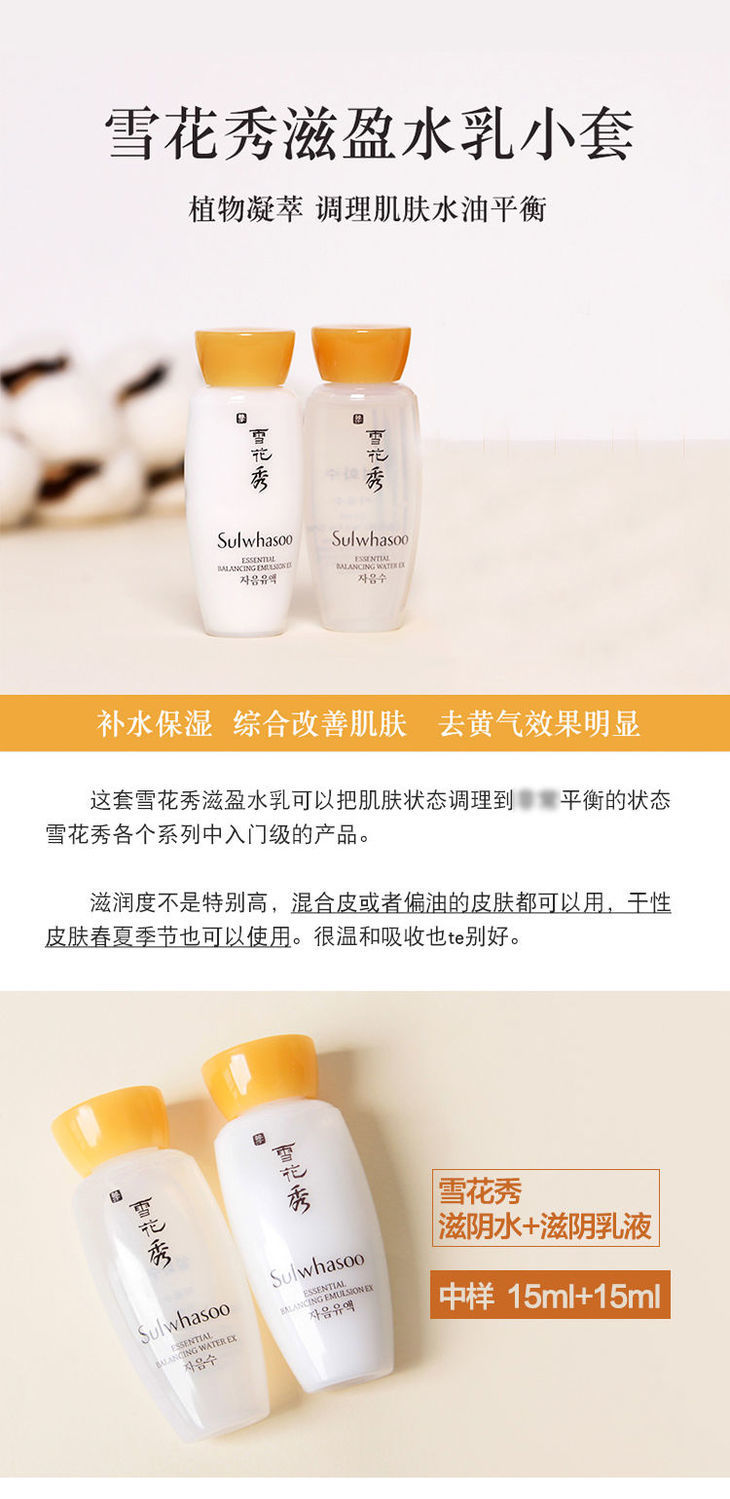 【爆款超低价预售 急单慎拍】韩国雪花秀滋阴水乳中样15ml小样滋盈生补水保湿水油平衡去黄套装