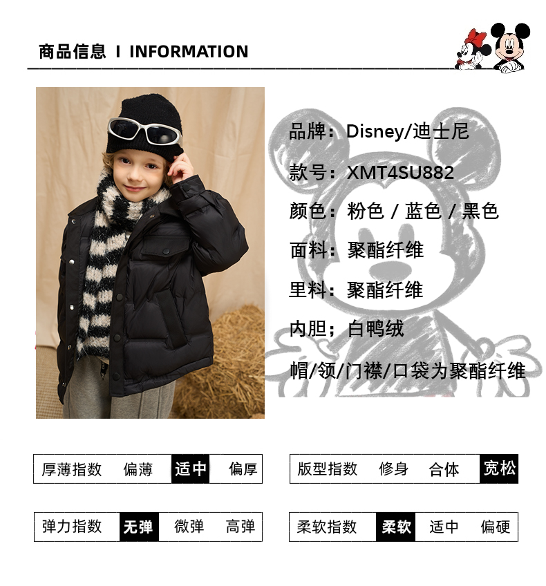 Disney/迪士尼儿童羽绒服内胆男女童加厚保暖校服神器宝妈亲子装