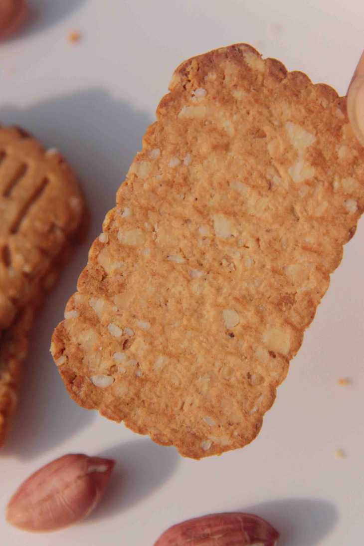 这次饼干没有加一滴油,而是加入黄豆粉、芝麻粒和大量花生碎